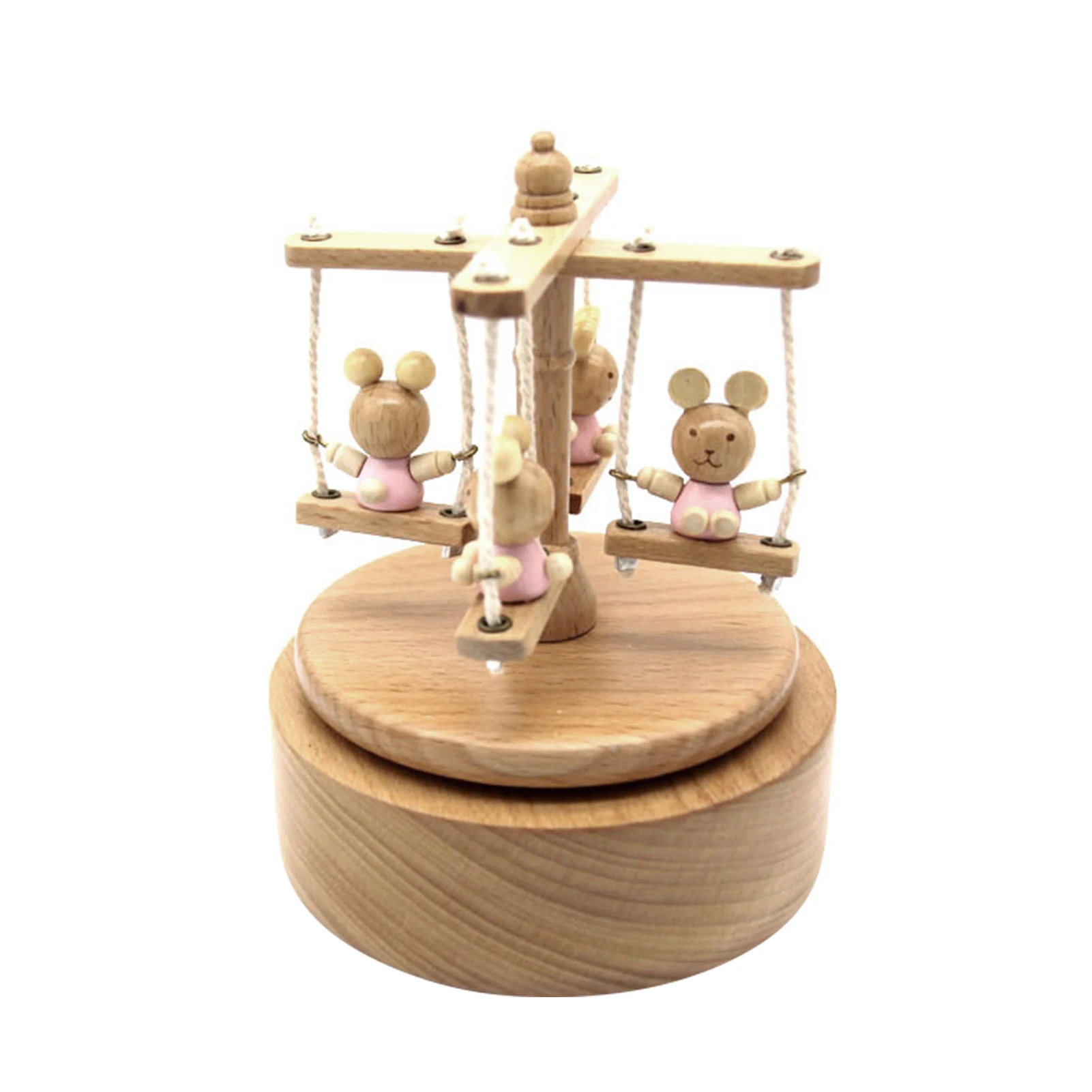 Музыкальная шкатулка оснащена 4 милыми розовыми медведями, сидящими на качающемся стуле, и они вращаются горизонтально по мере воспроизведения музыки.