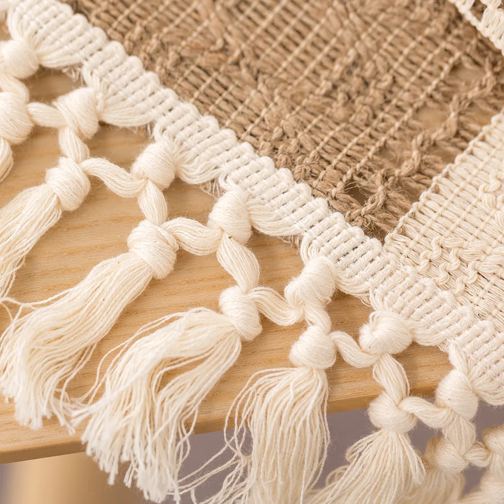 Сельская ткань мешковины льняной стол с бахромой деревенский ручной работы джутовый деревенский декор для столовой