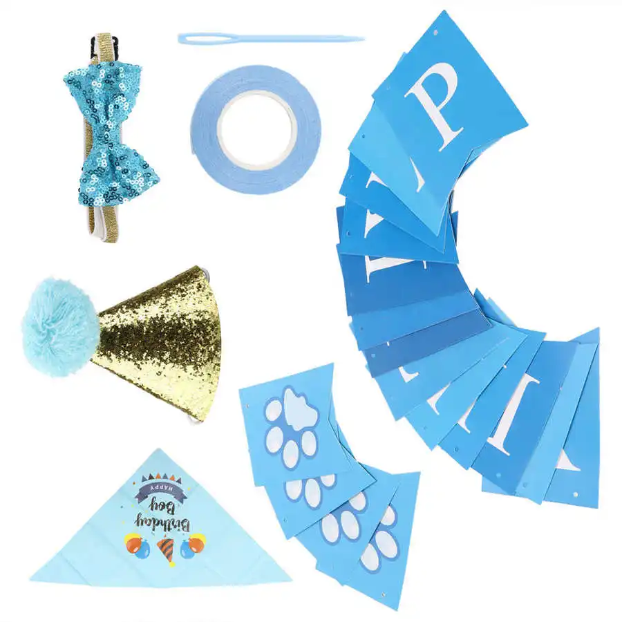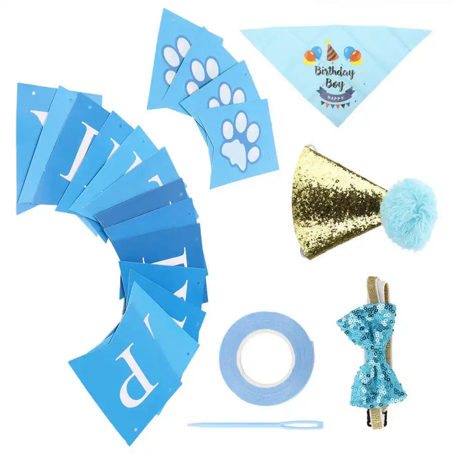 1. Поставляется с стримерами, шапкой, шарфом, галстуком-бабочкой, пластиковой булавкой, лентой, отличными украшениями на день рождения, чтобы отпраздновать особый день вашего щенка.Спецификация: