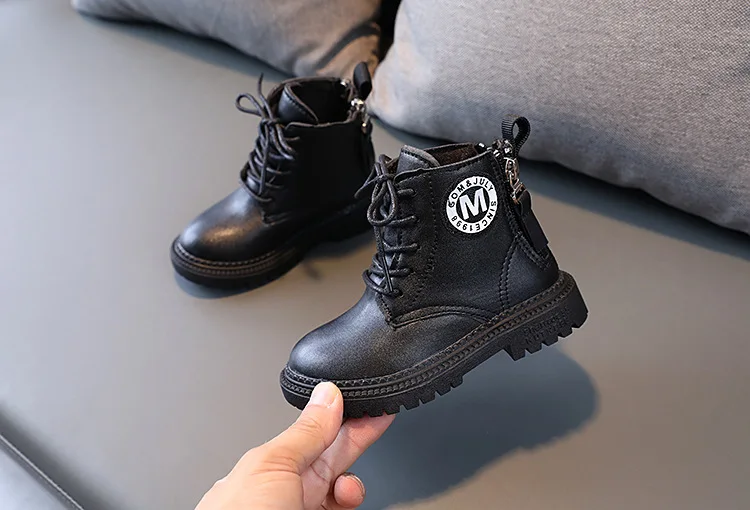 2021 ботинки для девочек, детские черно-белые кожаные ботинки Martin, модная обувь для мальчиков и девочек, резиновые ботинки для детей, размер 21-30
