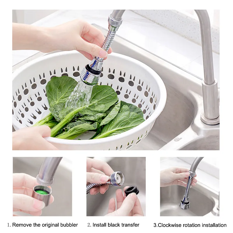 <Вращение на 360 градусов: распылитель смесителя оснащен гибким шлангом, вращением на 360 градусов, легко чистится под слепым углом кухонной раковины.