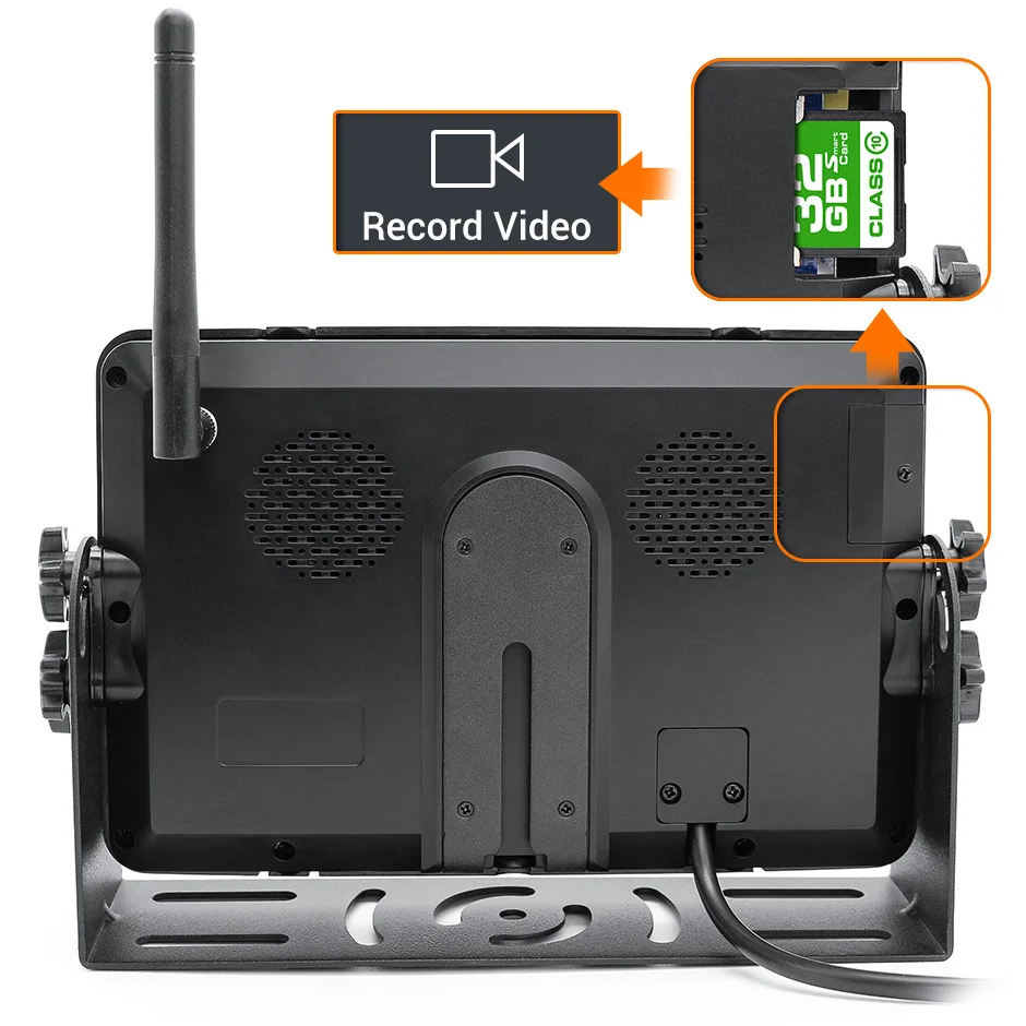• Камера заднего вида ночного видения IR Водонепроницаемая резервная камера заднего вида со встроенным беспроводным передатчиком-авто водонепроницаемый объектив камеры, с 18 индивидуальными инфракрасными (ИК) светодиодный. Эффективный диапазон: 15 м. Это помогает вашему видению все еще четко ночью или в плохую погоду.