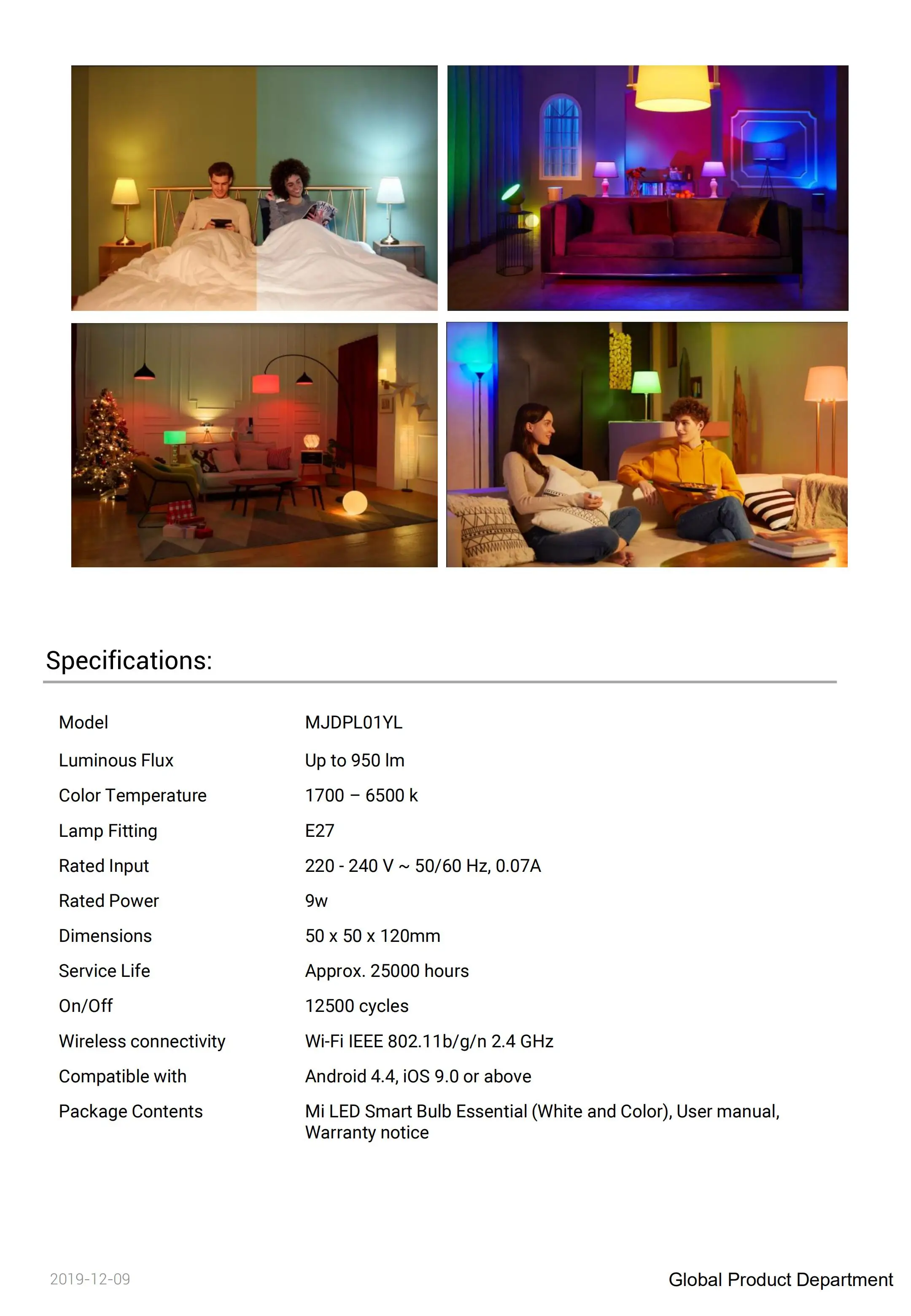 Mi светодиодный смарт-лампочка имеет 16 mi llion цветов