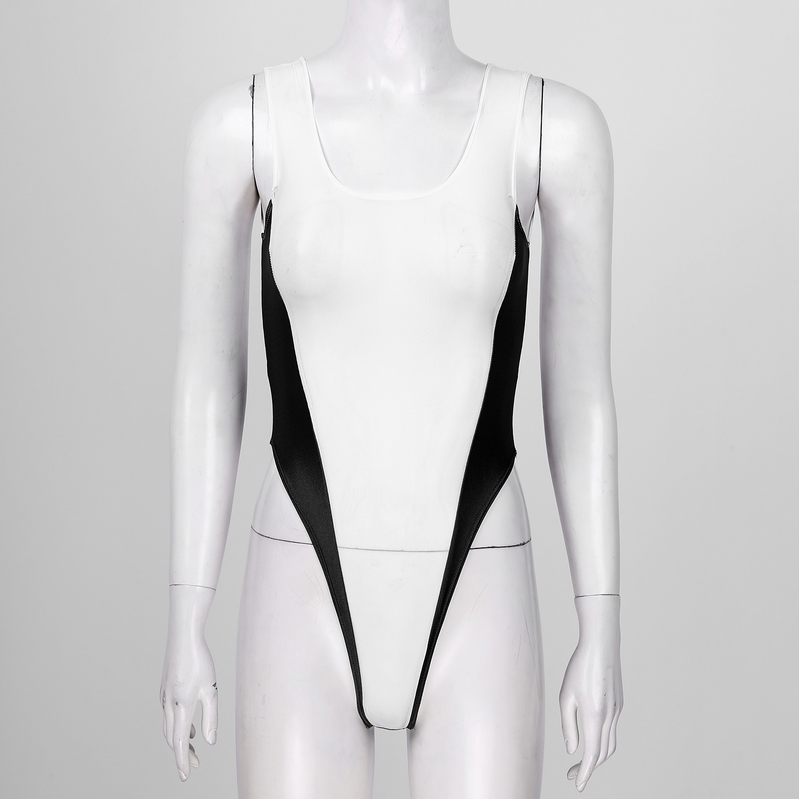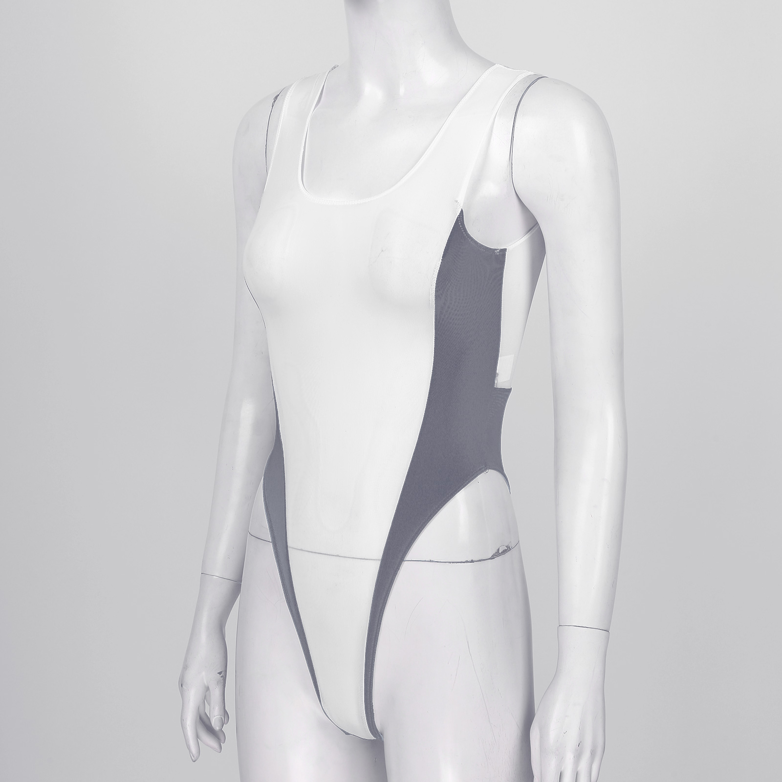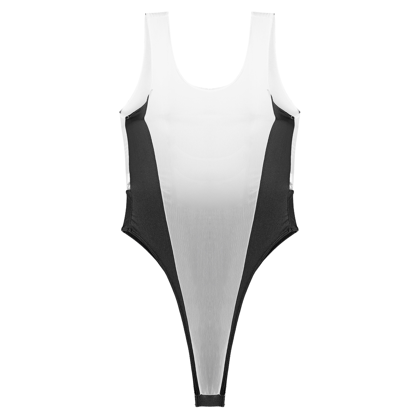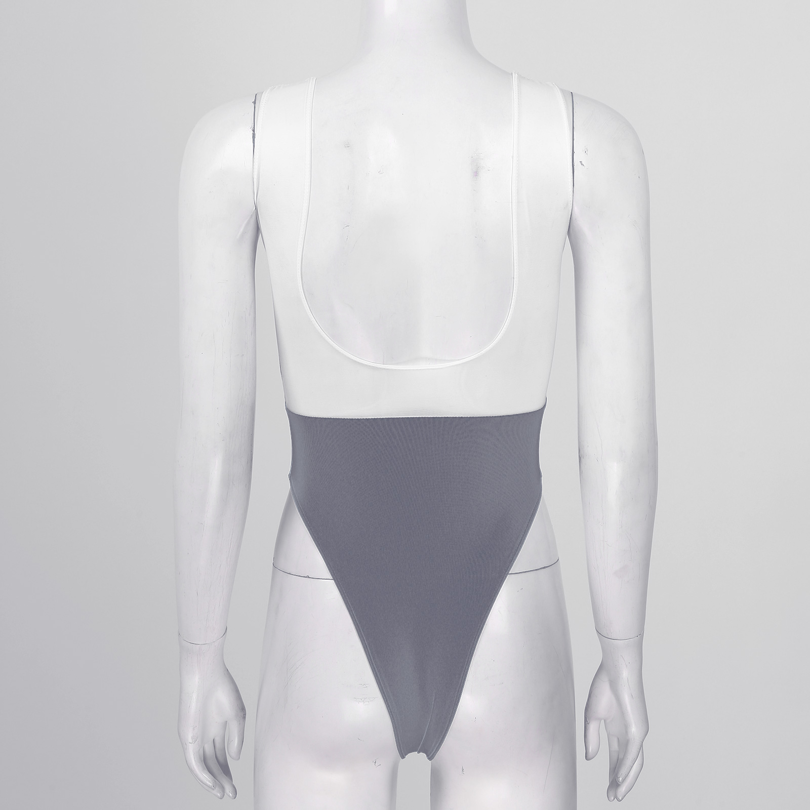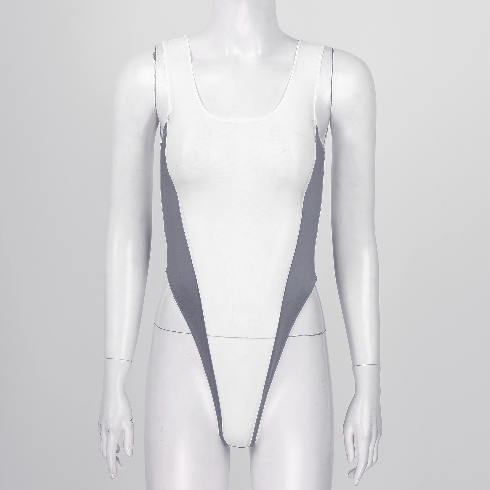 Женский цельный купальник контрастного цвета, прозрачный боди с высоким вырезом без рукавов, купальник без бретелей.