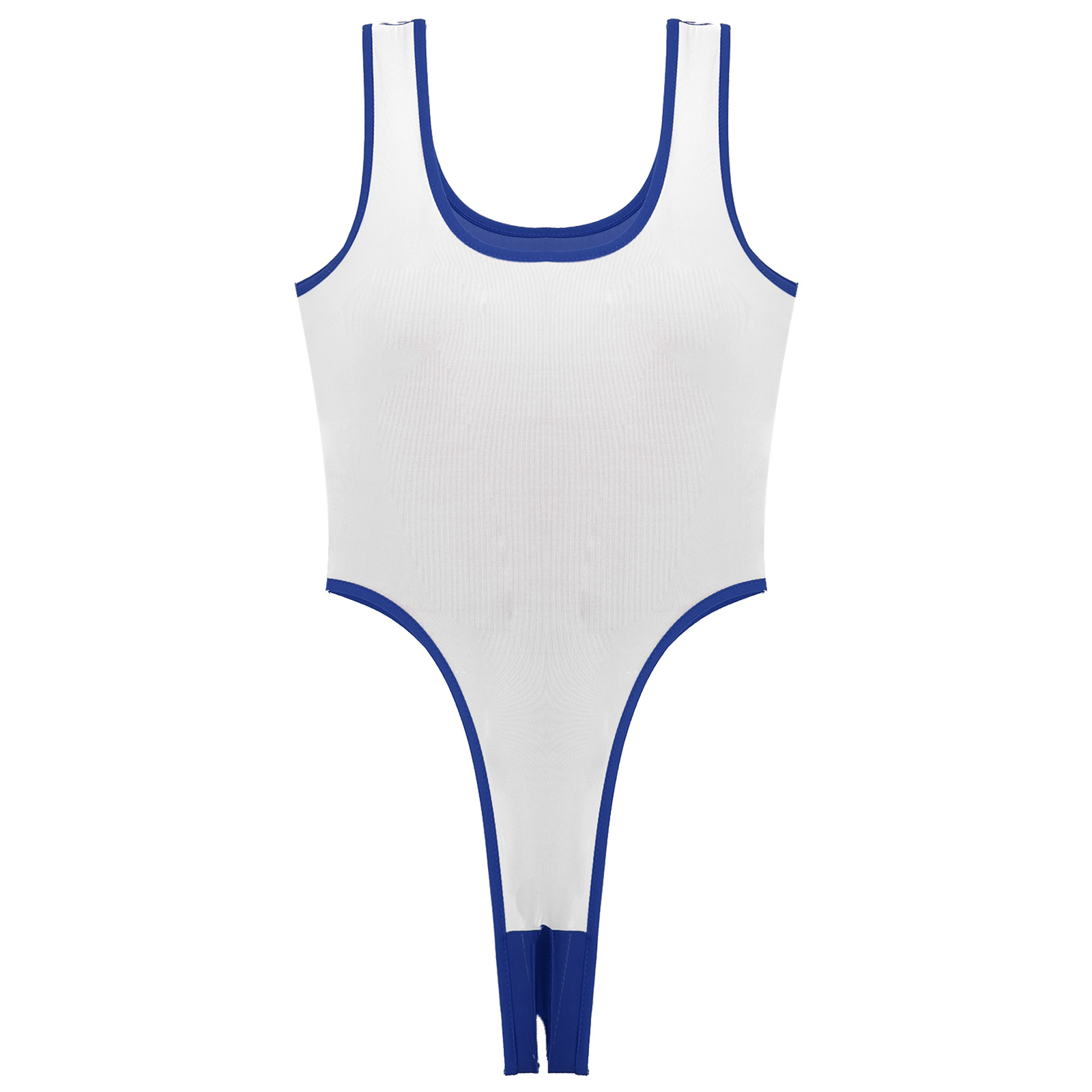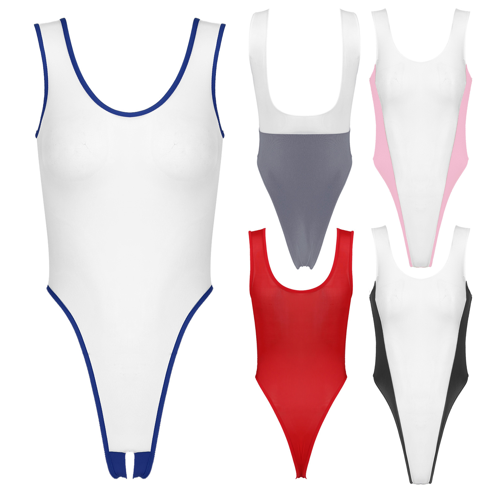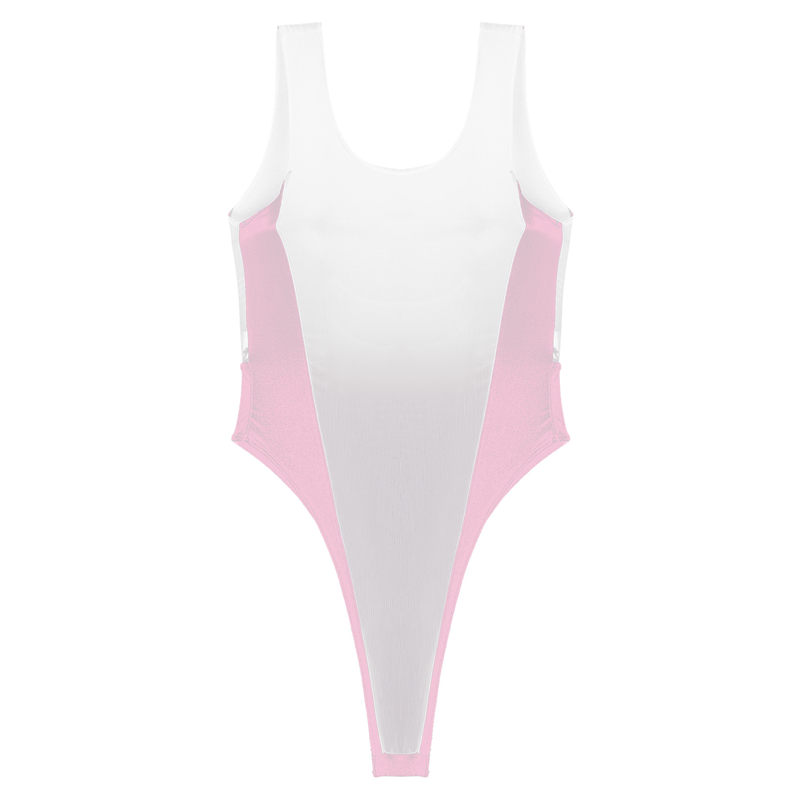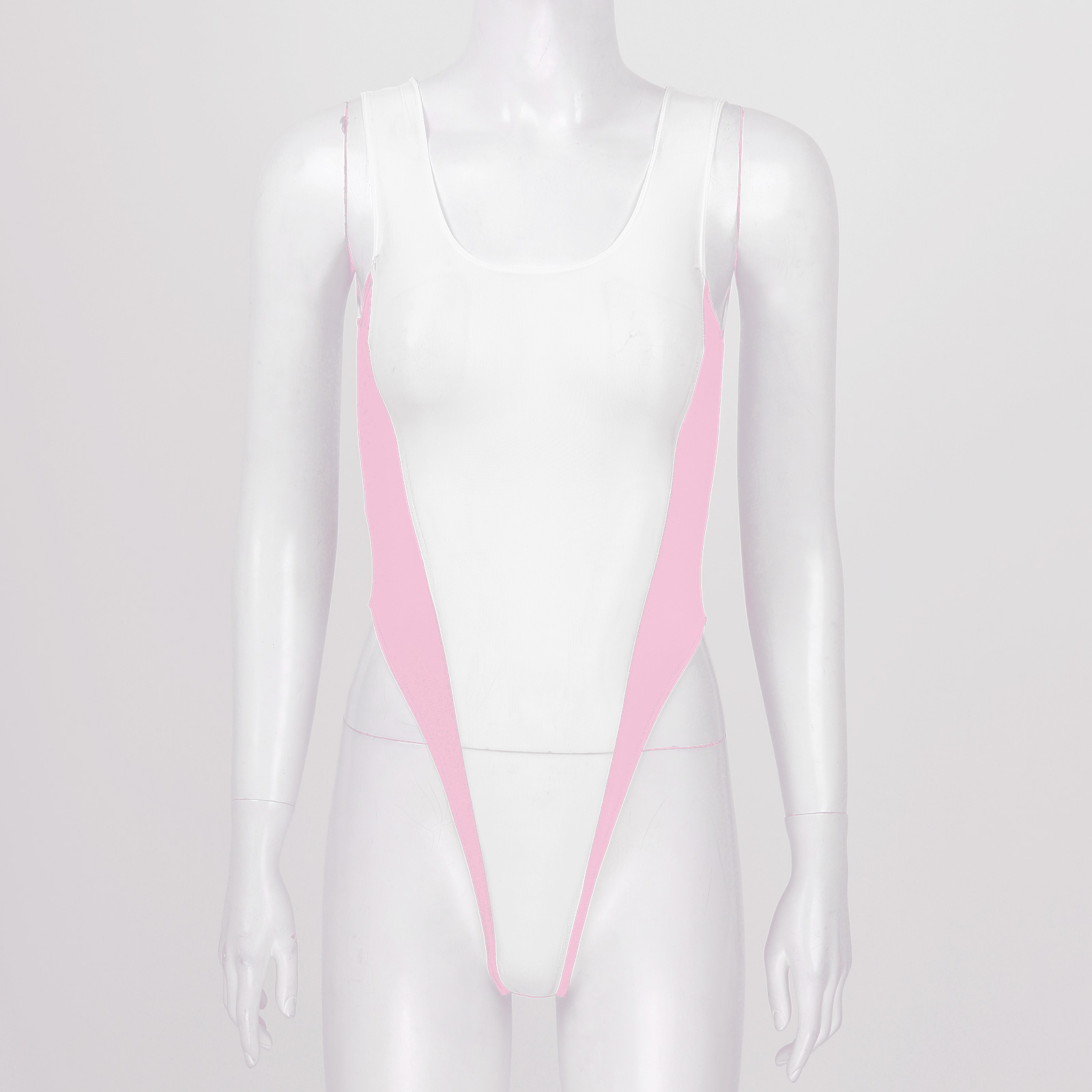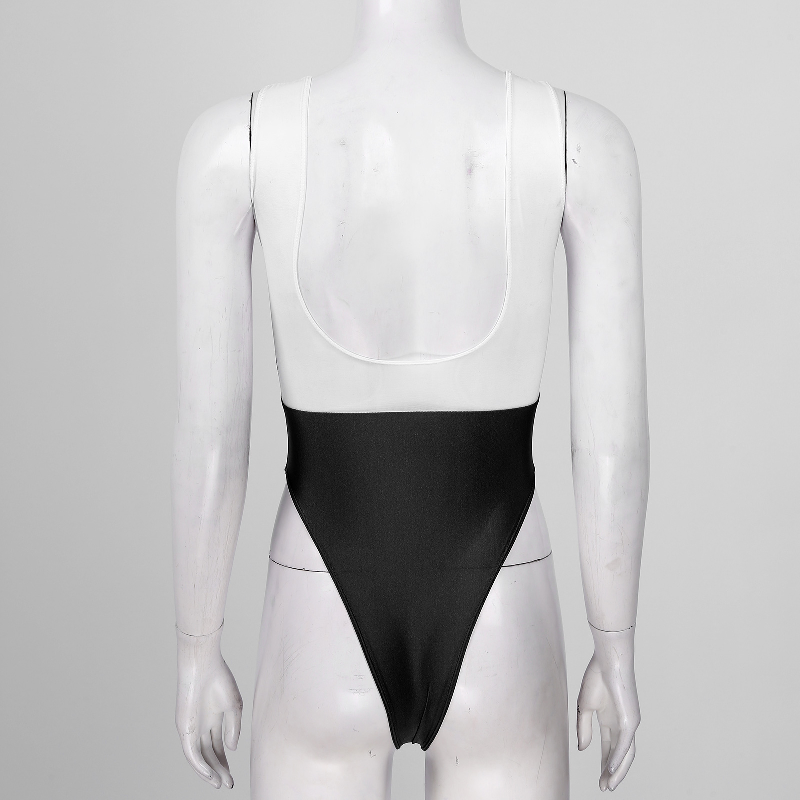 Женский цельный купальник контрастного цвета, прозрачный боди с высоким вырезом без рукавов, купальник без бретелей.