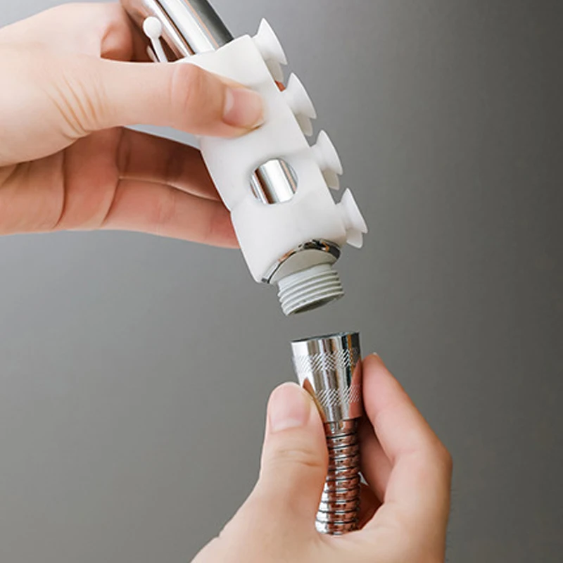 Характеристики: Название: держатель для душа Материал: силикон Цвет: белый, серый Размеры: 7,5x4x3 см Применение: Фиксированный кронштейн для душа Упаковочный лист: