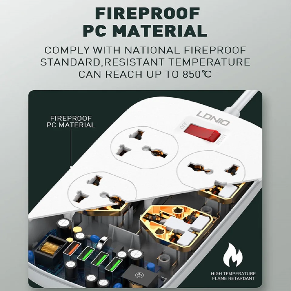 Особенности: usb-зарядка QC3.0, огнезащитный корпус, защитный затвор для детей, защита от перегрузки.