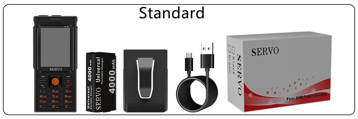 1 * телефон, 1 * чехол на ремешке, 1 * аккумулятор, 1 * USB кабель, 1 * коробка, 1*4 Гб карта памяти