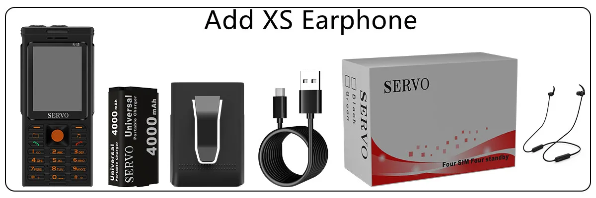 1 * телефон, 1 * чехол на ремешке, 1 * аккумулятор, 1 * USB кабель, 1 * коробка, 1 * XS наушники