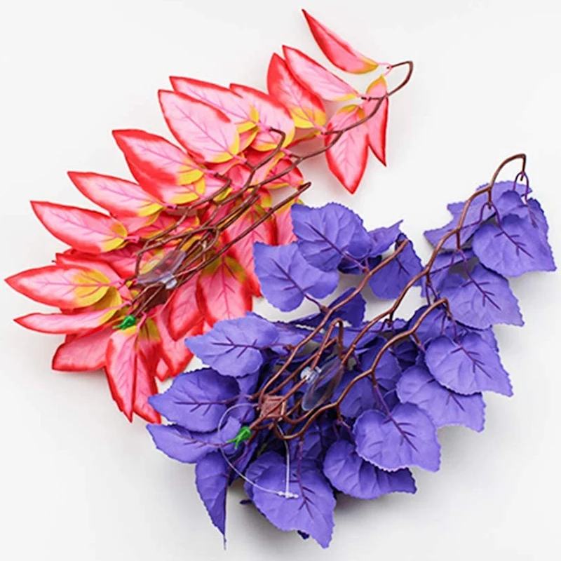 Растения рептилий, 2 шт висячие шелковые Террариум завод с присоской для бородатых драконов, ящериц, геккон, змеи домашних животных
