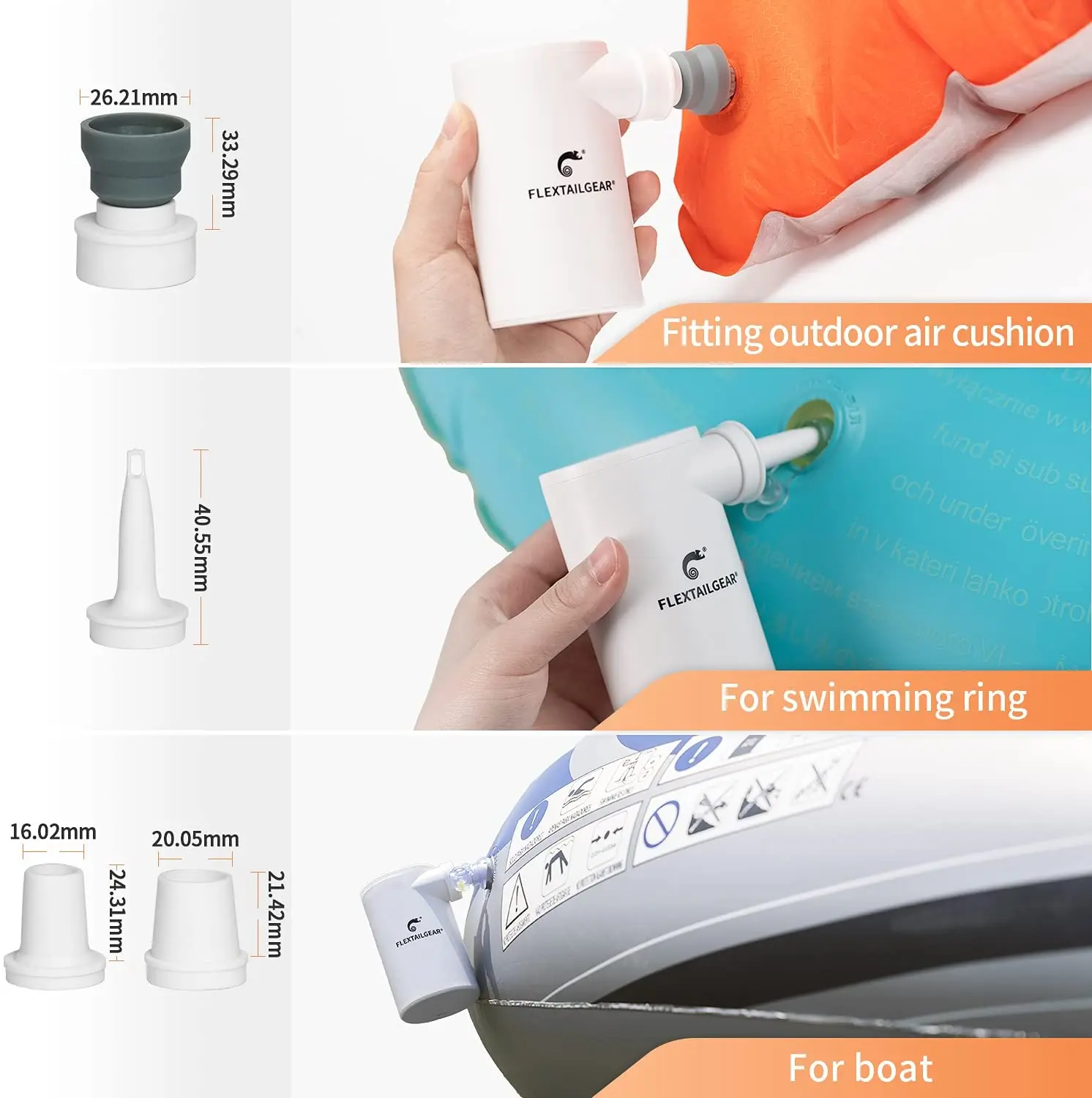 5. 5 насадок на выбор: EVO воздушный насос с аккумулятором имеет 5 различных типов воздушных насадок, чтобы соответствовать подавляющему большинству продуктов, что позволяет надувать/сдувать различные предметы для любого случая!