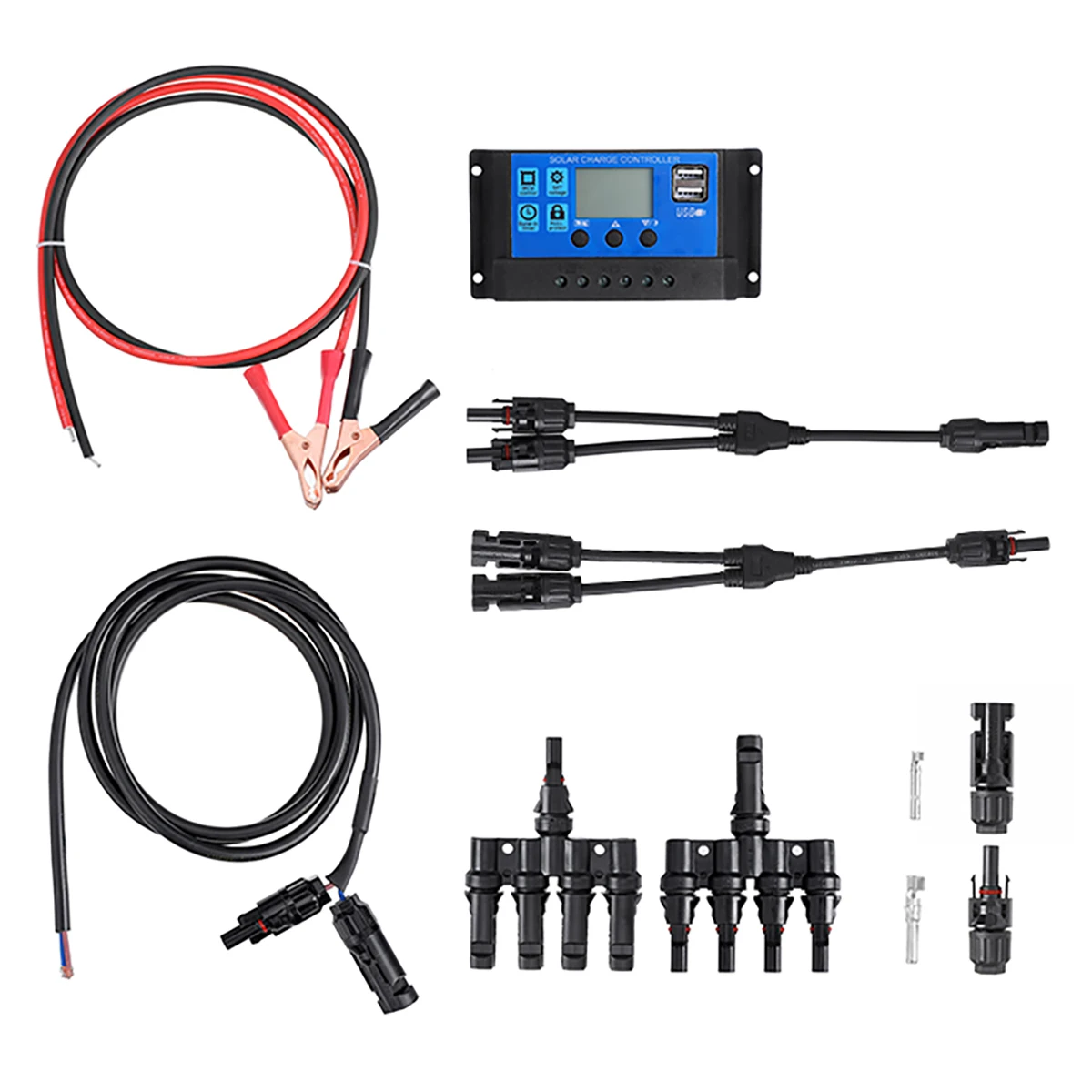 (10A контроллер, удлинитель, параллельное соединение и крокодил)