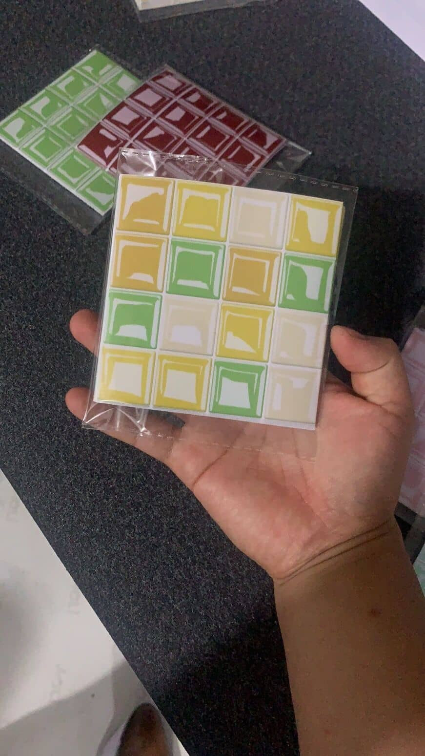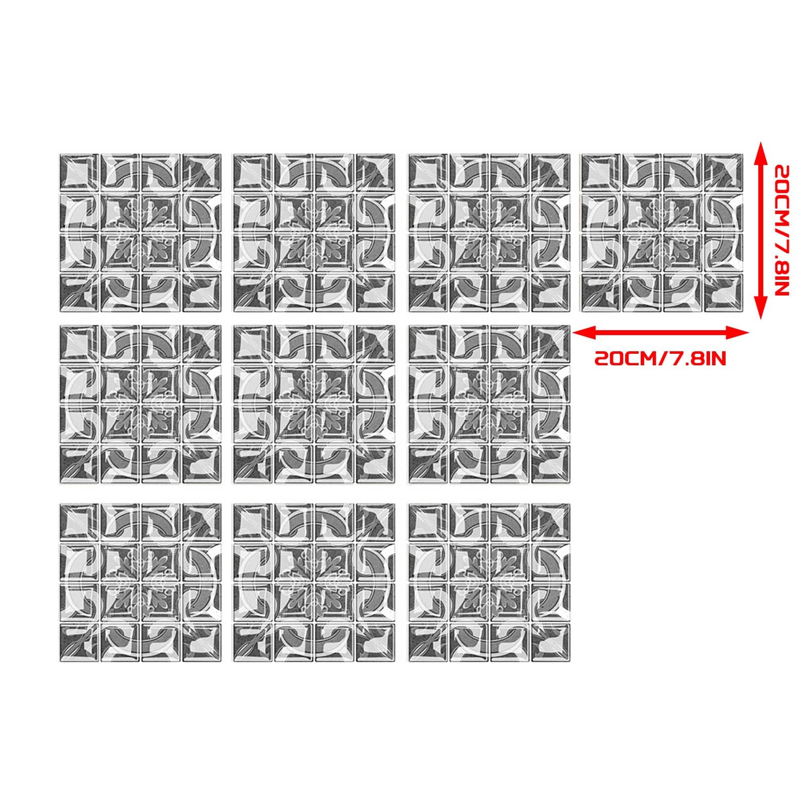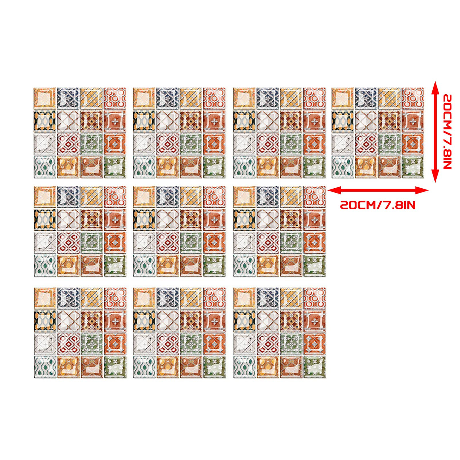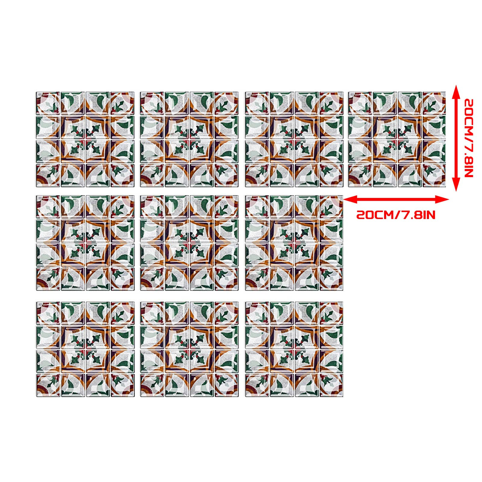 Size -20cm*20cm/7.8in*7.8in. Package:10 pcs.Gradient color tile sticker easy to clean and will not fade over time. If it gets dirty, just clean it with a sponge or damp cloth to remove stains(Water & Moisture proof).