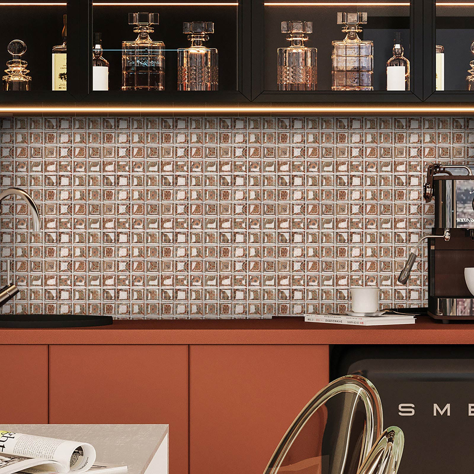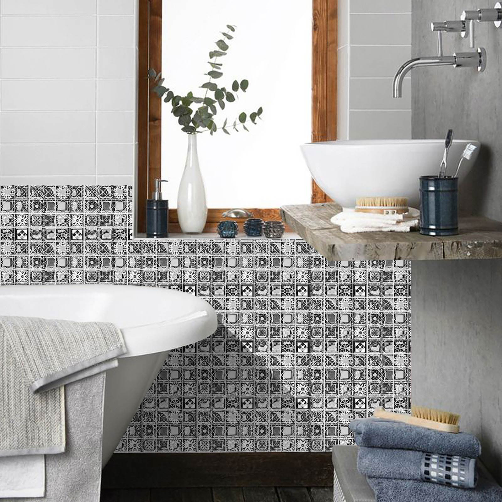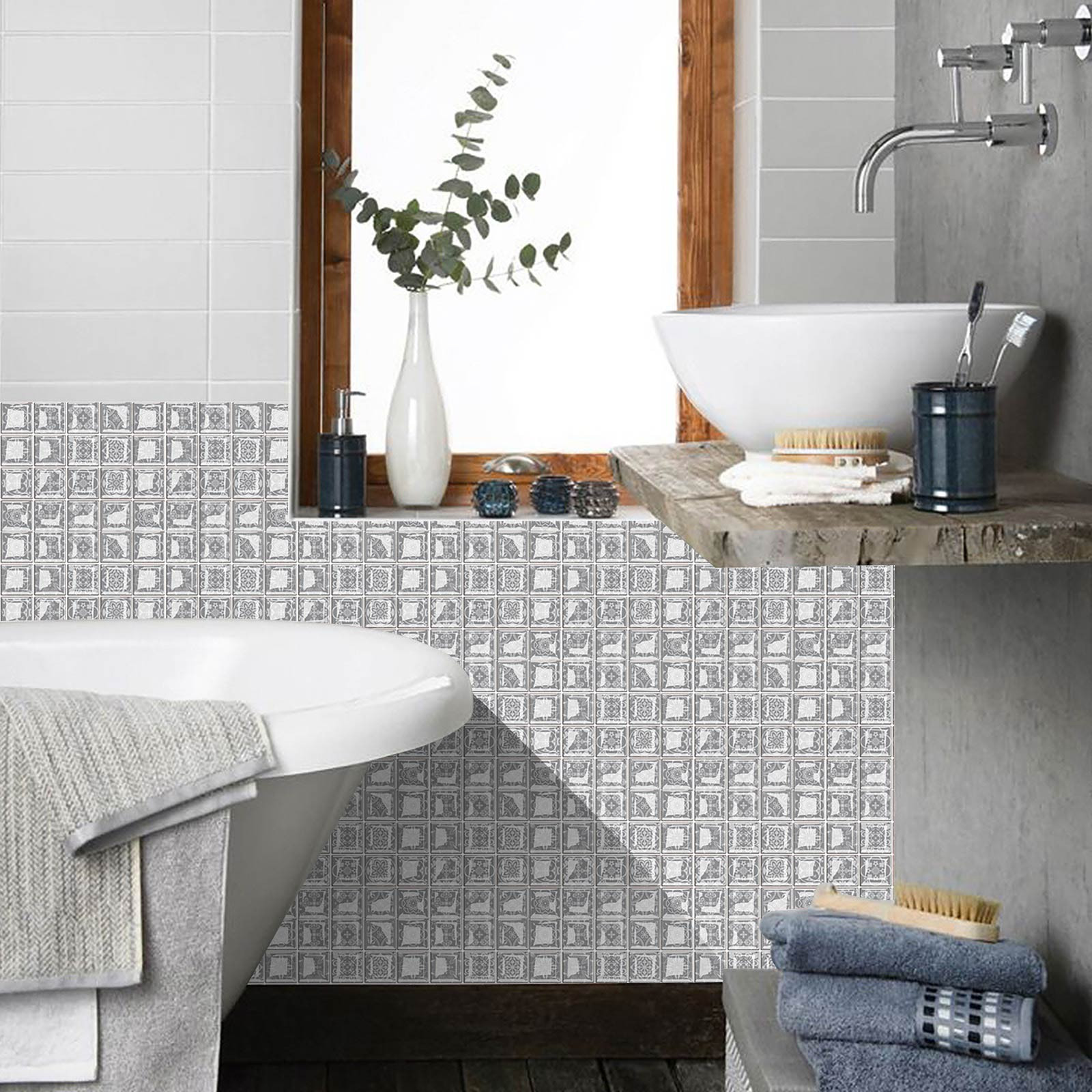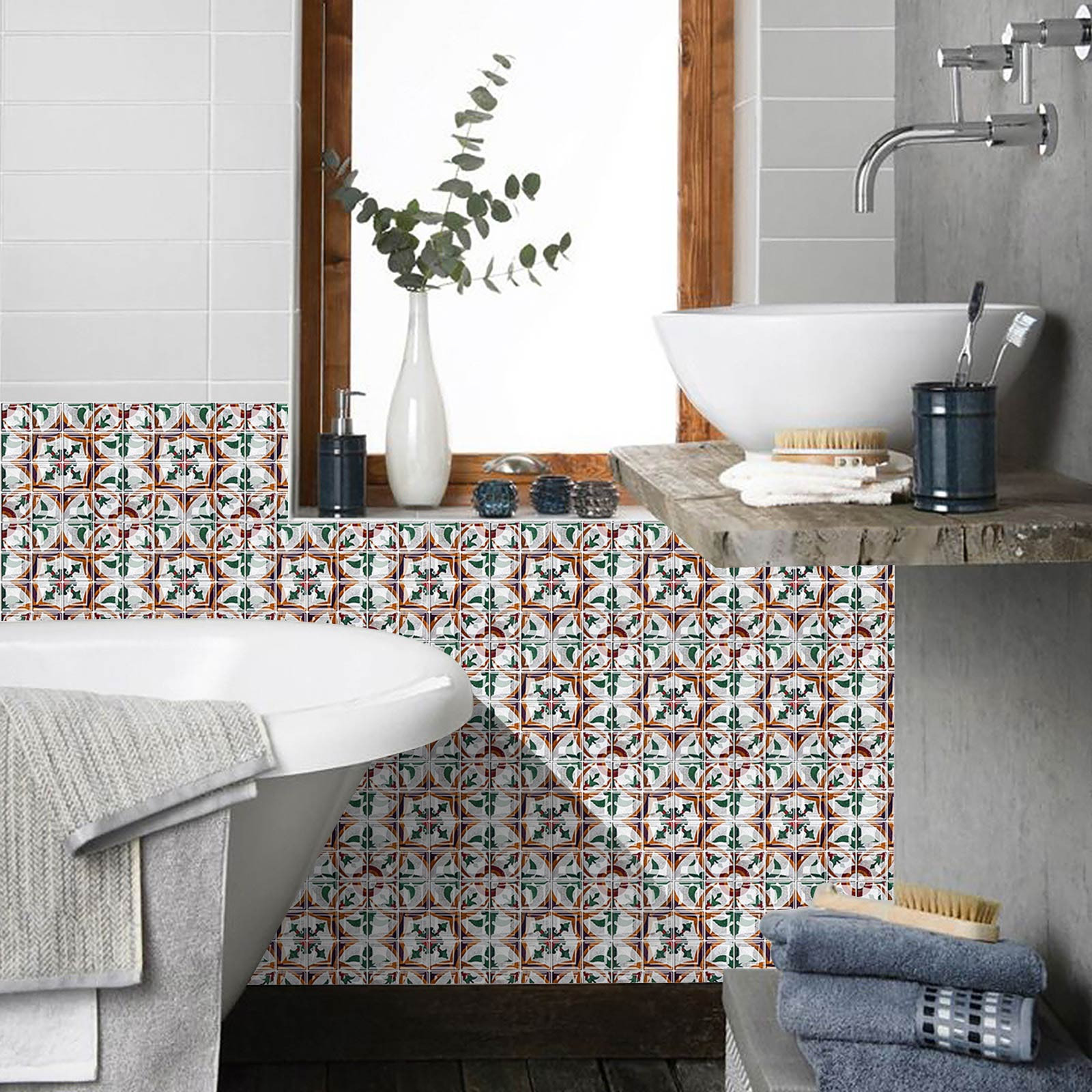 Size -20cm*20cm/7.8in*7.8in. Package:10 pcs.Gradient color tile sticker easy to clean and will not fade over time. If it gets dirty, just clean it with a sponge or damp cloth to remove stains(Water & Moisture proof).