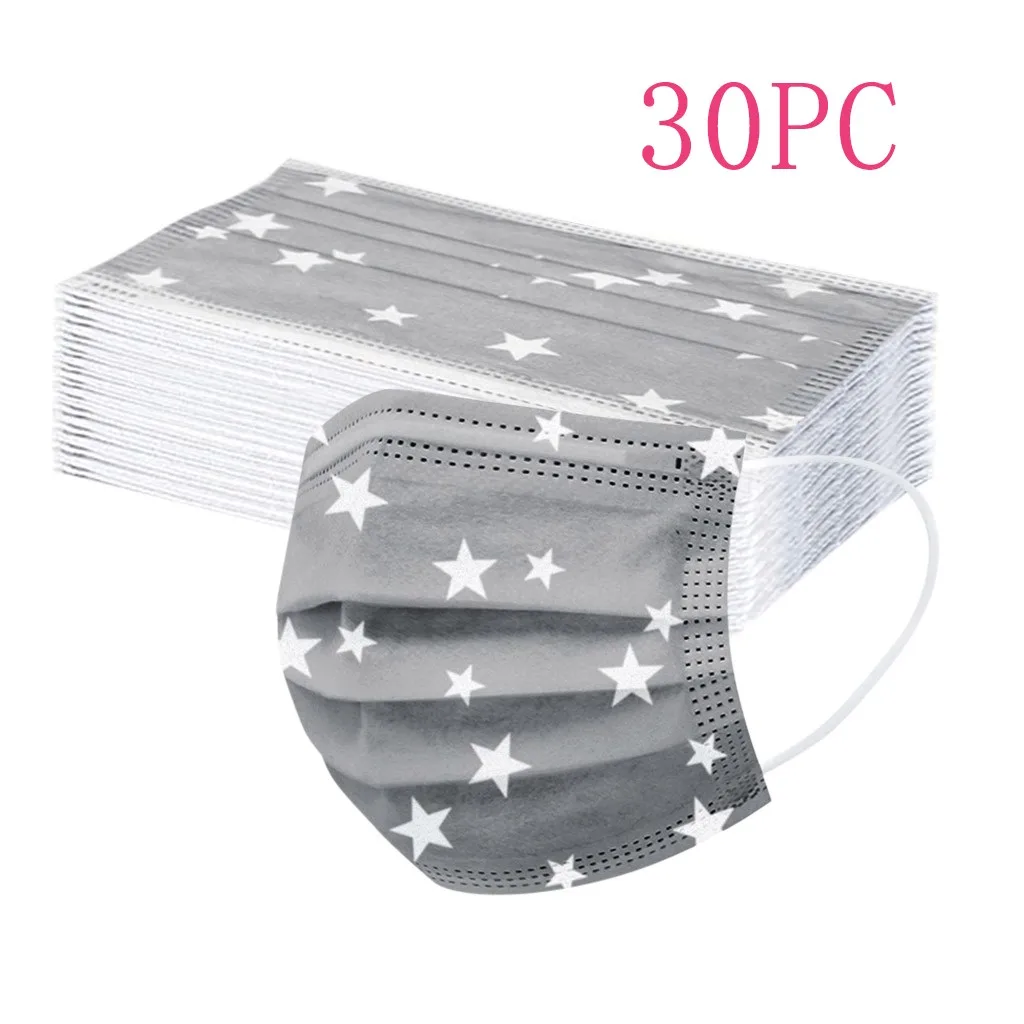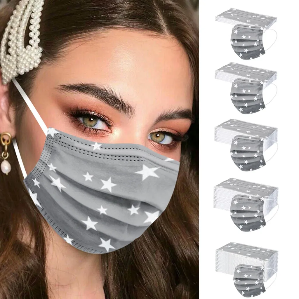 Взрослая маска унисекс одноразовая маска для лица пятиконечная звезда принт маски для рта 3ply Нетканая ткань Mascaras Ear Loop Mascarilla