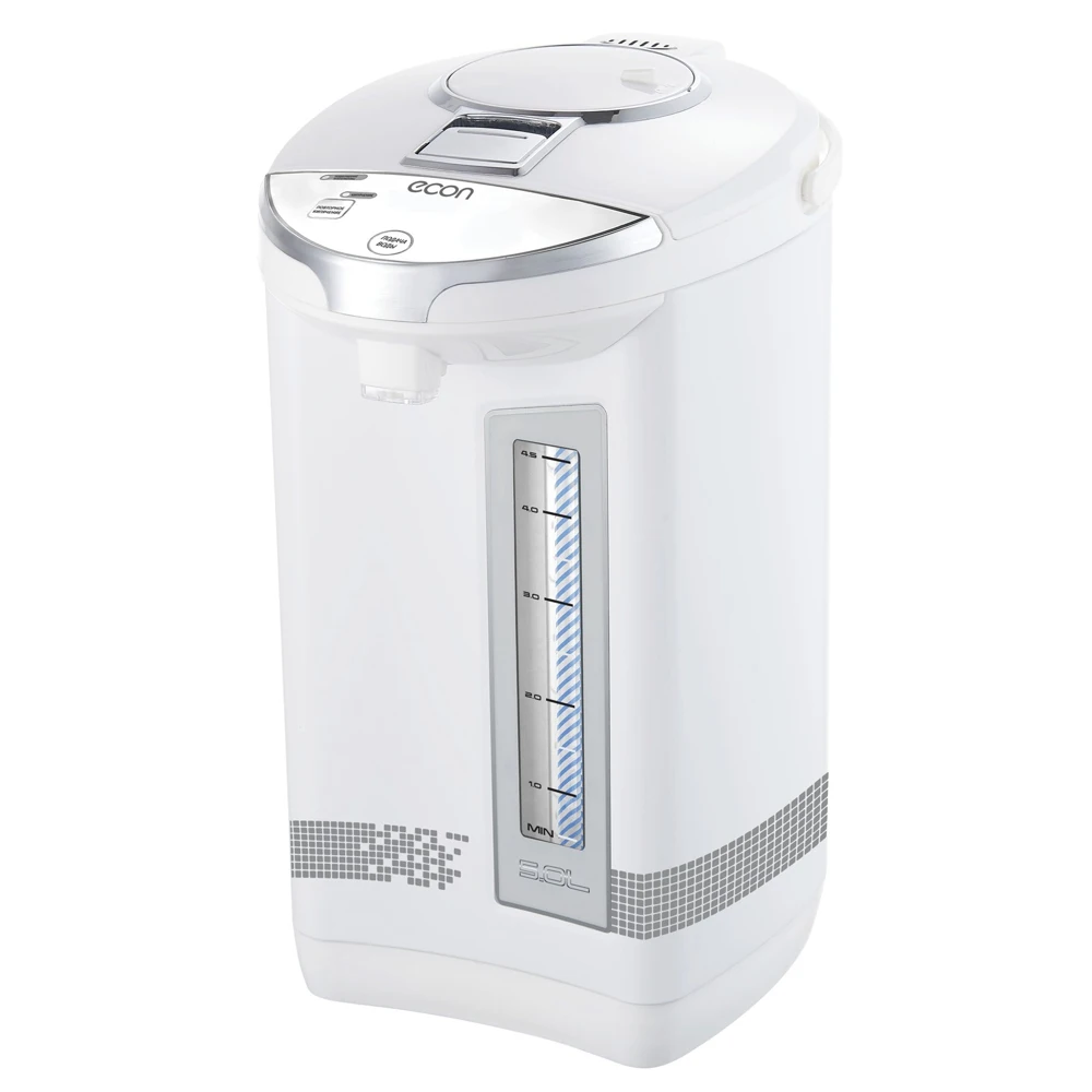 Термопот ECON ECO-503TP совмещает функции чайника и термоса. Этот электрический прибор кипятит воду и поддерживает ее при высокой температуре в течение долгого времени. Этому способствует внутренняя колба из нержавеющей стали, стенки которой хорошо держат тепло.