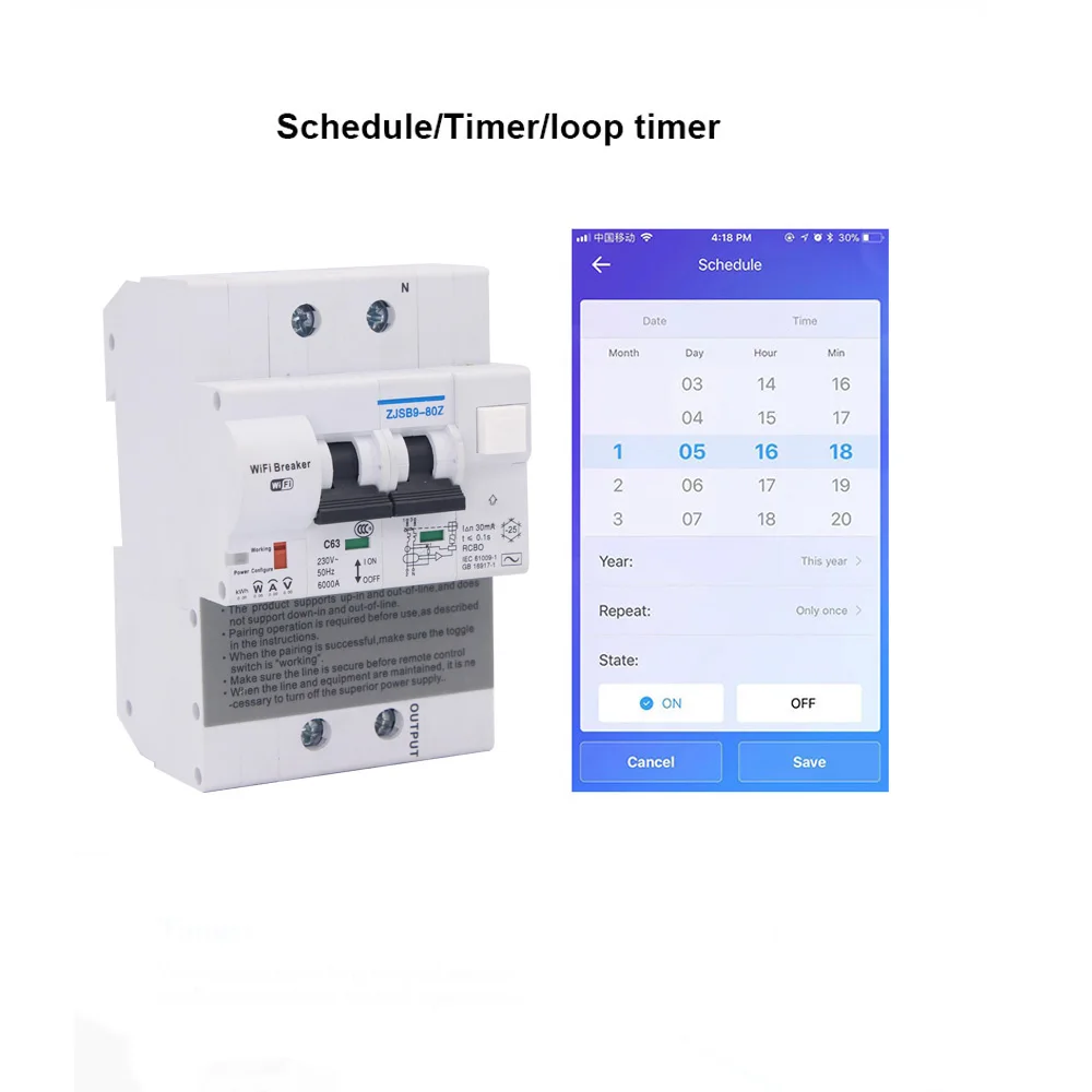 WIFI смарт RCBO прерыватель цепи при утечке на землю с контролем энергии совместим с Amazon Alexa ,Google Home для умного дома