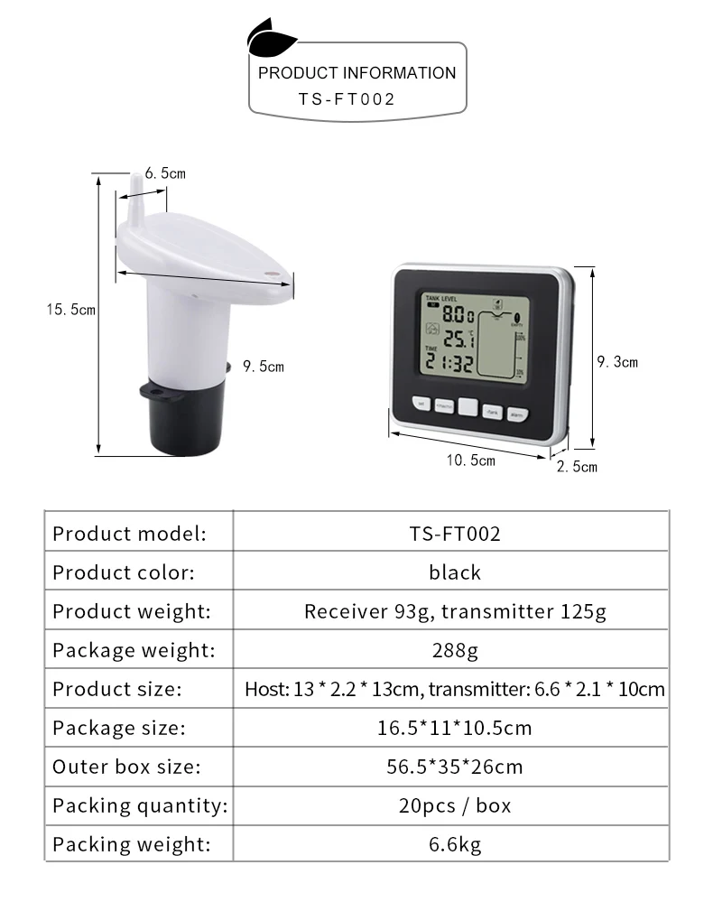 Вы можете установить его в верхней части резервуара для воды, счетчик может измерить точную температуру с помощью ультразвукового датчика.