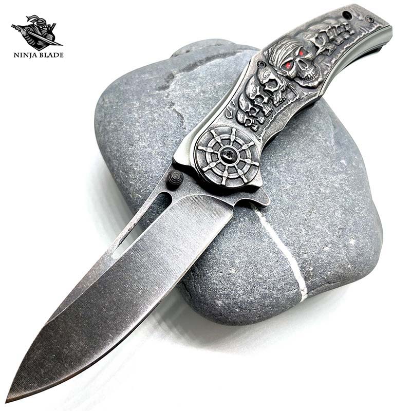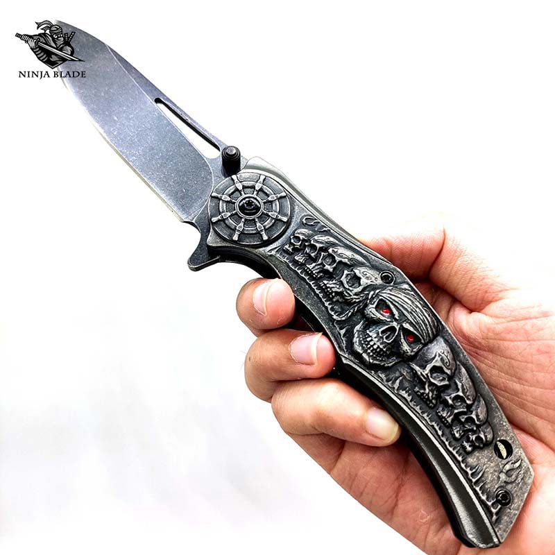 Складной нож в стиле Панк Смерти пиратов Карибского моря с черепом, нож для мытья камня, инструмент для повседневного использования, Походный нож в джунглях