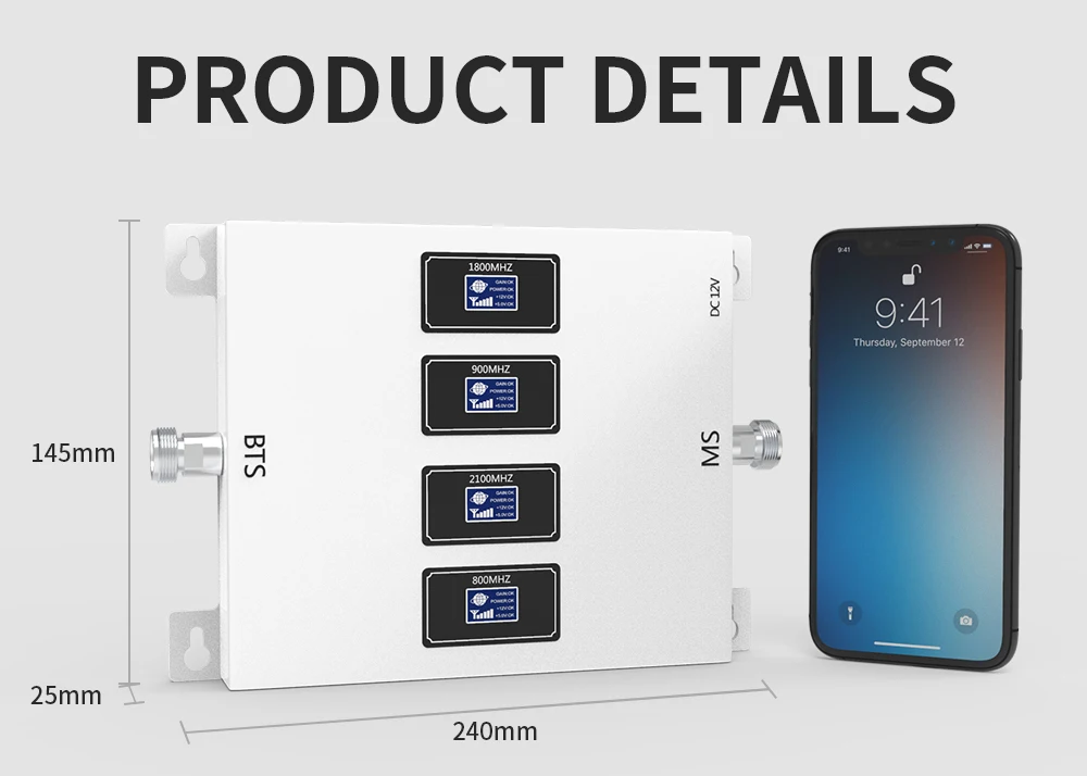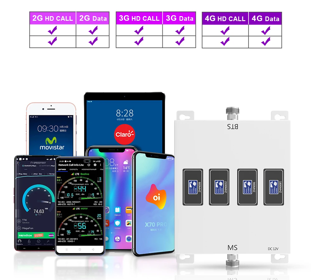 GOBOOST новый 4-двух диапазонный усилитель сигнала Сотовая связь усилительУлучшите GSM 2G 3G 4G LTE сигнал одновременно.