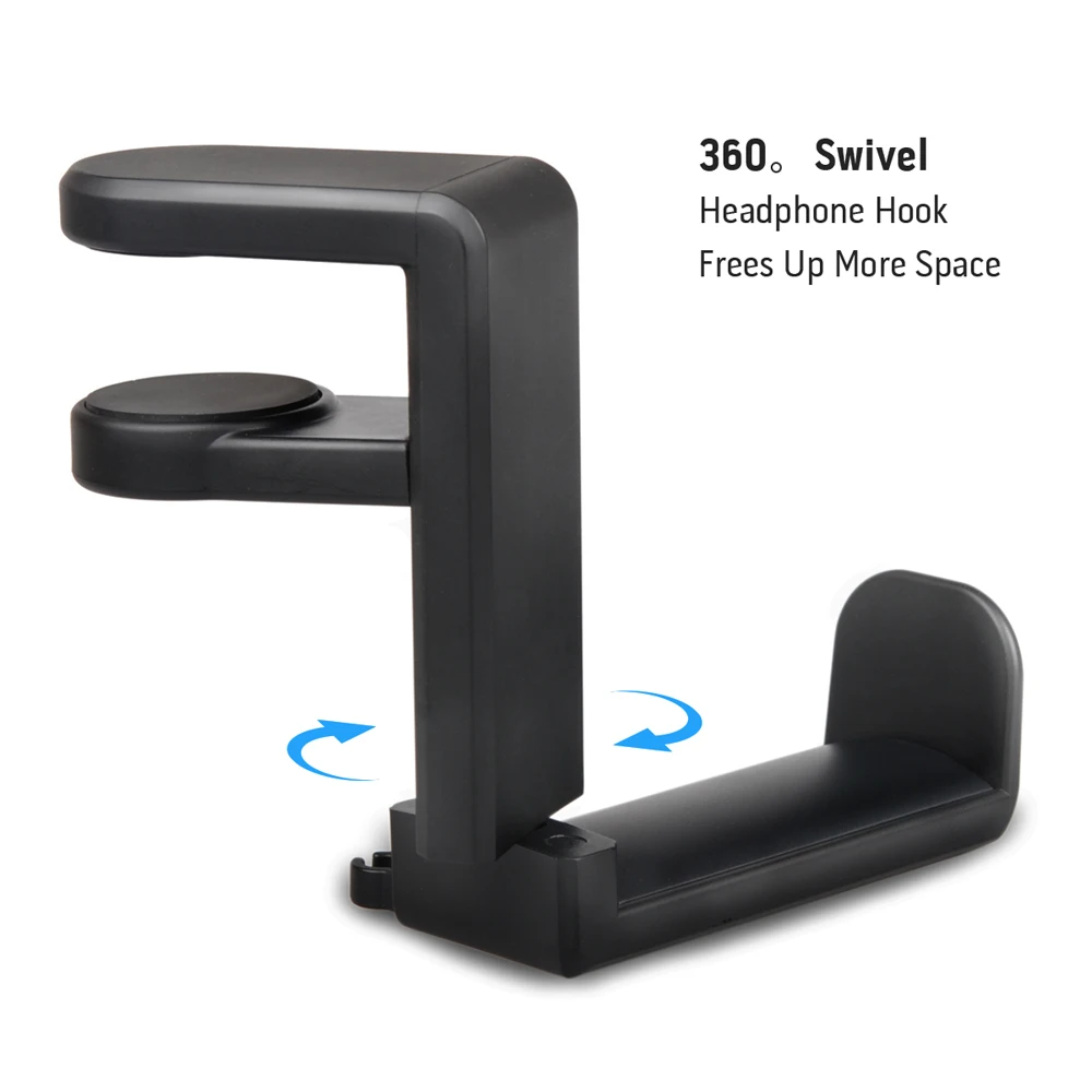 Вращающаяся Регулируемая рукоятка наушников под вашим столом для незаметного и неинтрузивного хранения и качания назад для легкого доступа.