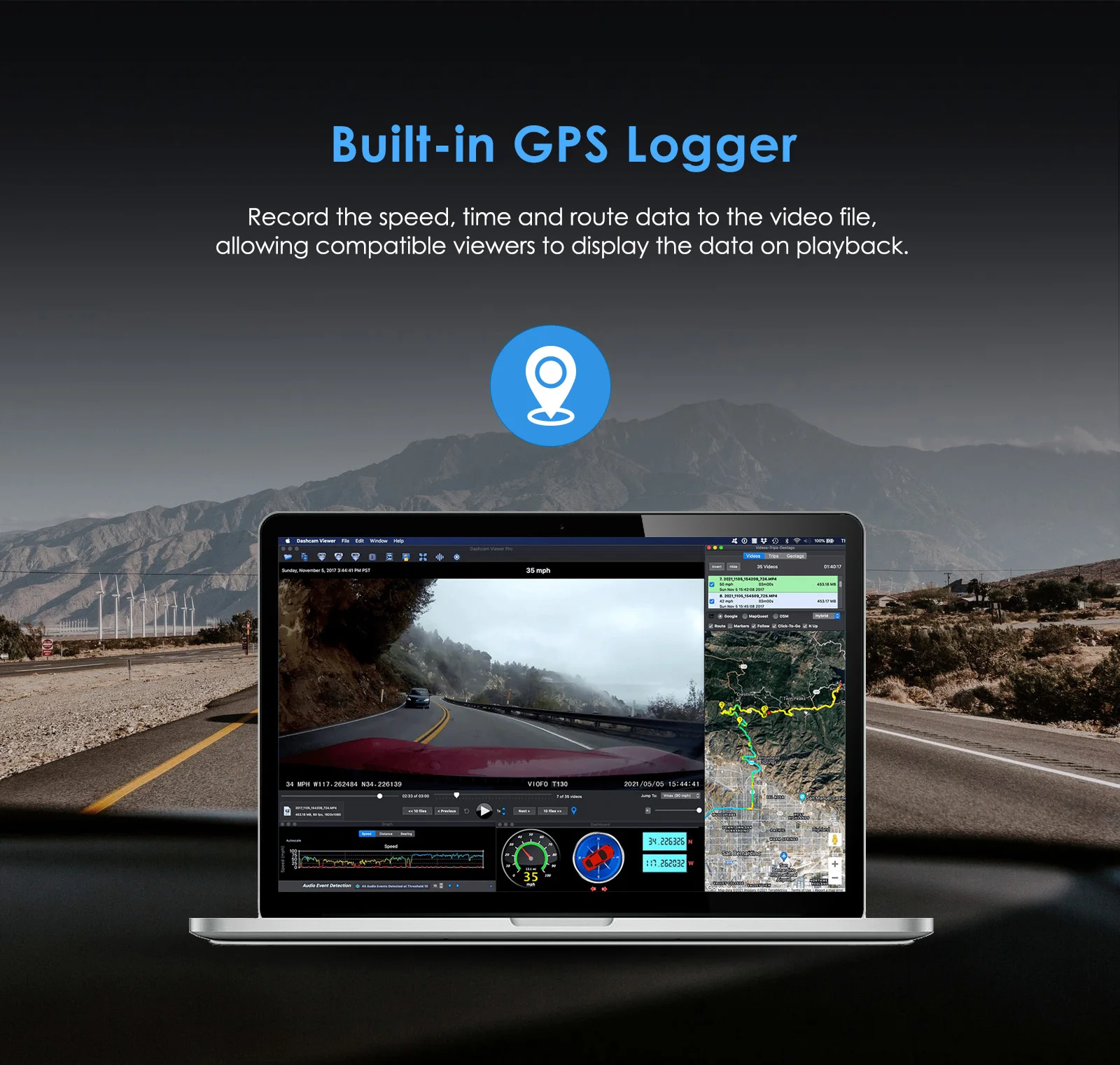Record the speed, time and route data to the video file, allowing compatible viewers to display the data on playback.