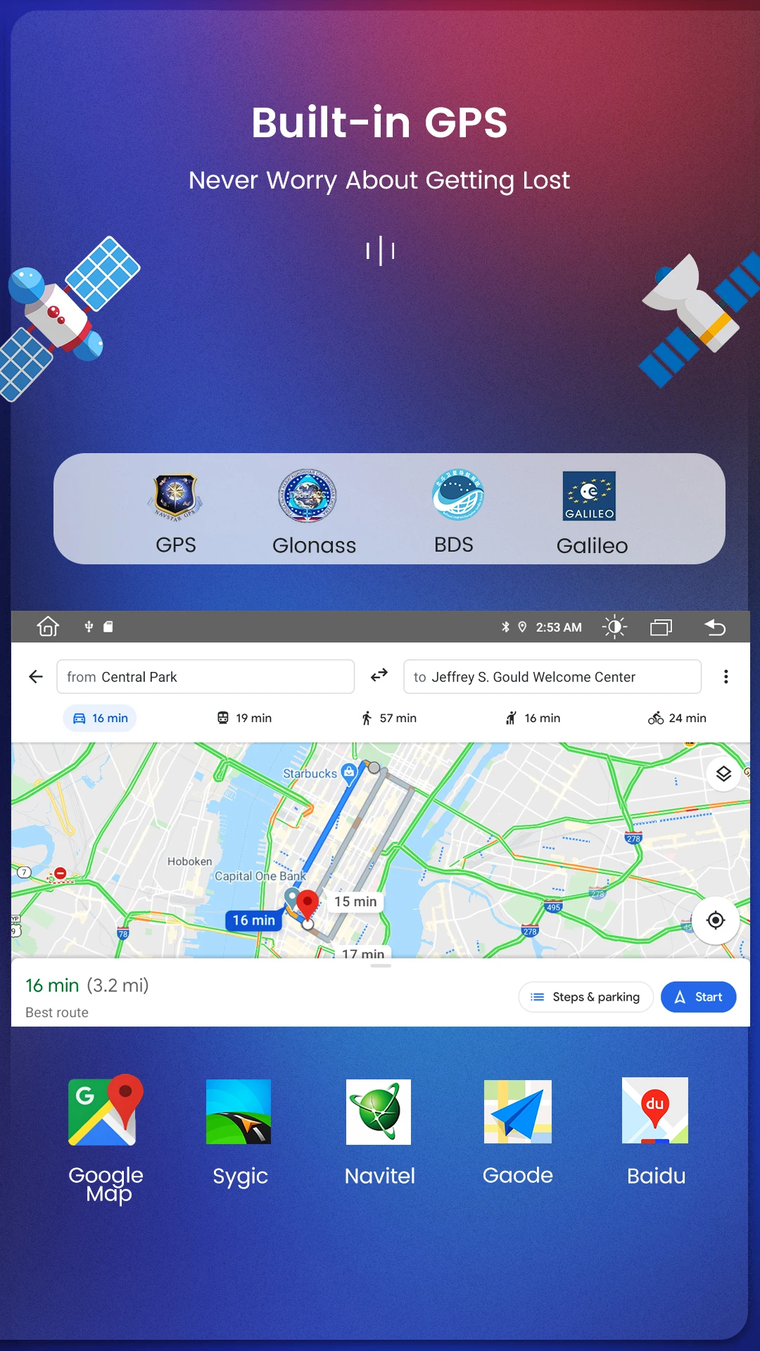«Встроенная навигационная система, поддержка онлайн/автономных навигационных карт, легко получать указания с/без интернета».