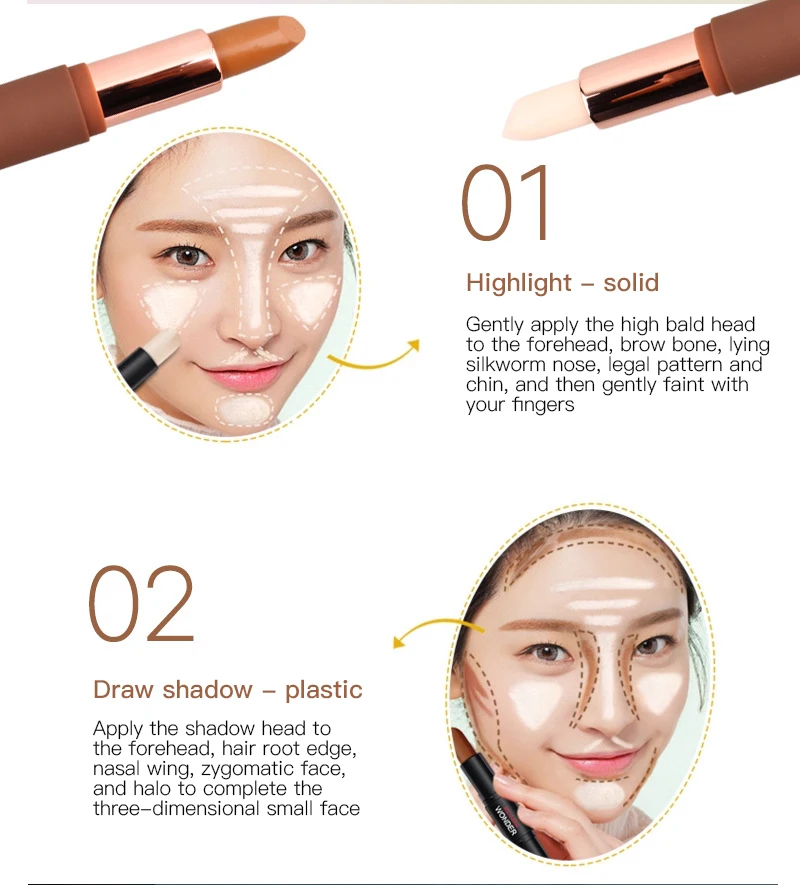 Круглый дизайн теневой головки в основном используется на краях лица, удлинении бровей, носа и нижней части губ