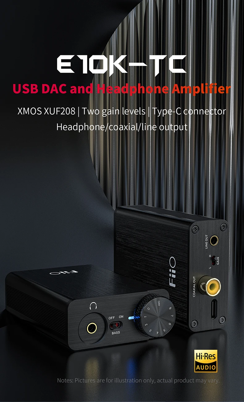FiiO E10K-TC усилитель для наушников Портативный Hi-Res USB DAC аудио 2,0 32 бит/384 кГц Type-C/коаксиальный/линейный выход