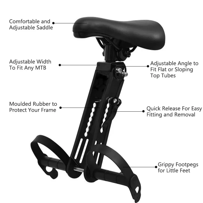 2, подходит для всех горных велосипедов: детский MTB сиденье регулируется, чтобы соответствовать плоской или наклонной верхней трубе. Обратите внимание, что Велосипедное Сиденье не подходит для электровелосипедов, дорожных велосипедов или более старых велосипедов с кабелями на верхней трубе.