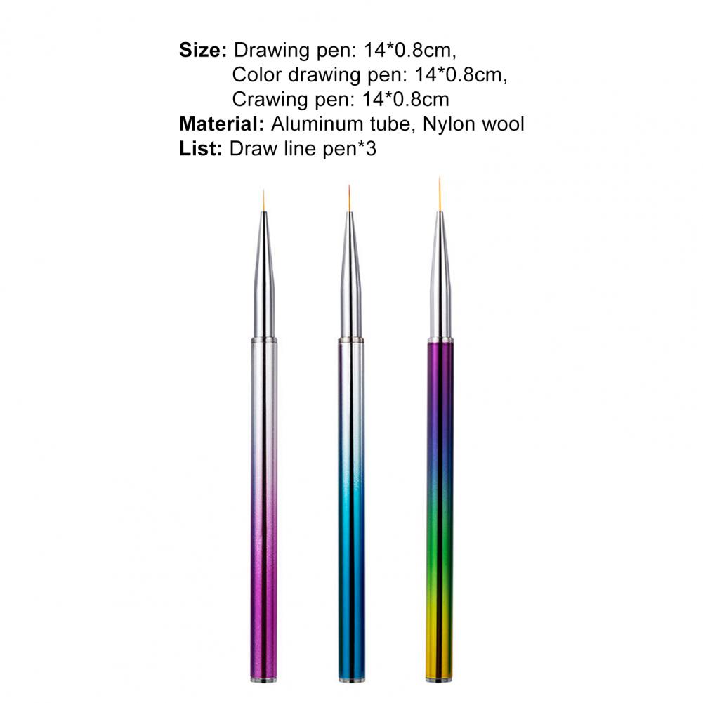 3 шт./компл., профессиональная ручка для ногтей, УФ-гель для дизайна ногтей, простая в использовании ручка для кистей, многофункциональная нейлоновая шерстяная подводка для рисования ногтей для салона