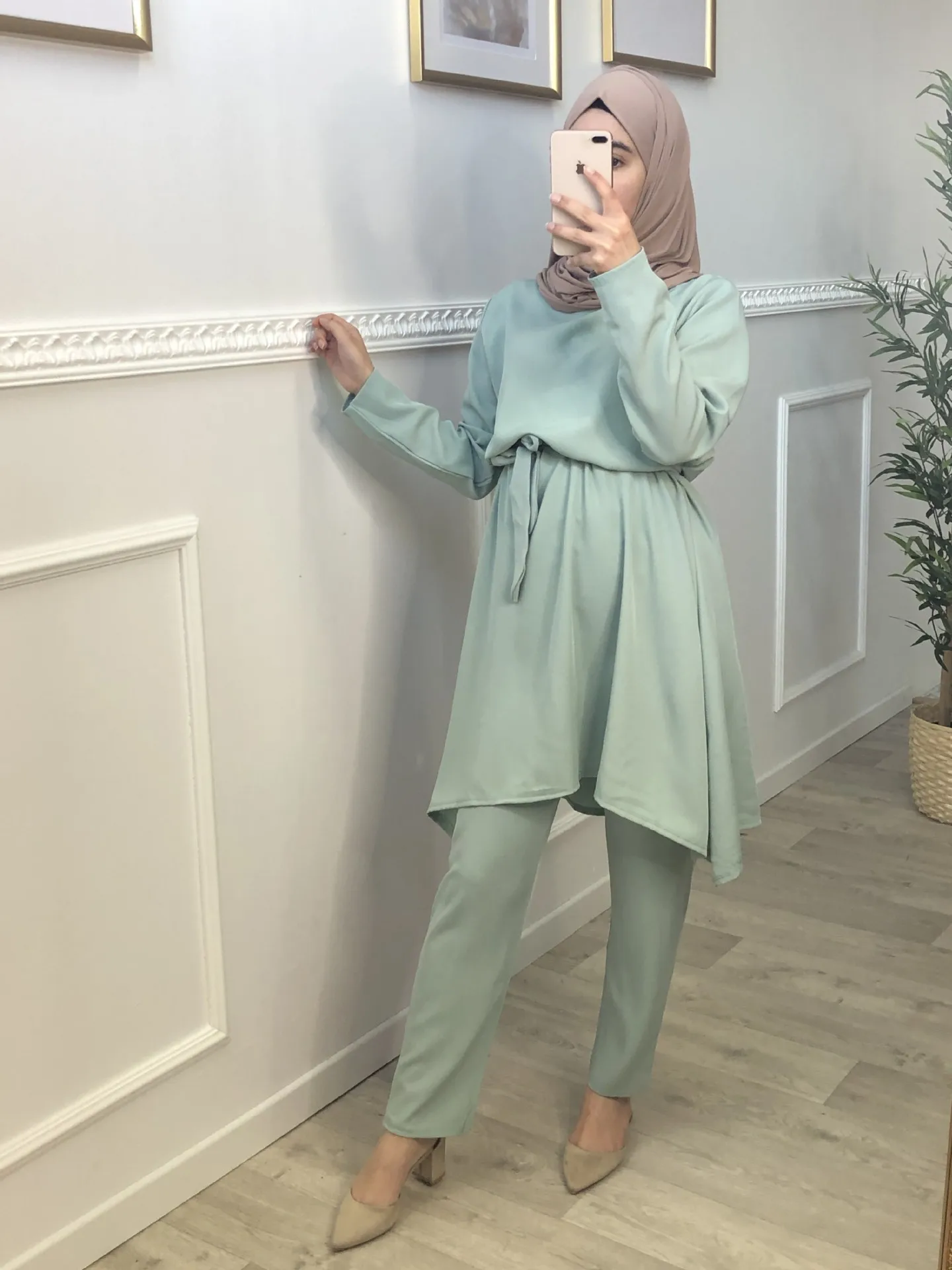 L:Shoulder 42 cm, Top Length 81.5 cm, Bust 112 cm,Pant Waist 76 cm, Pant Length 108 cm