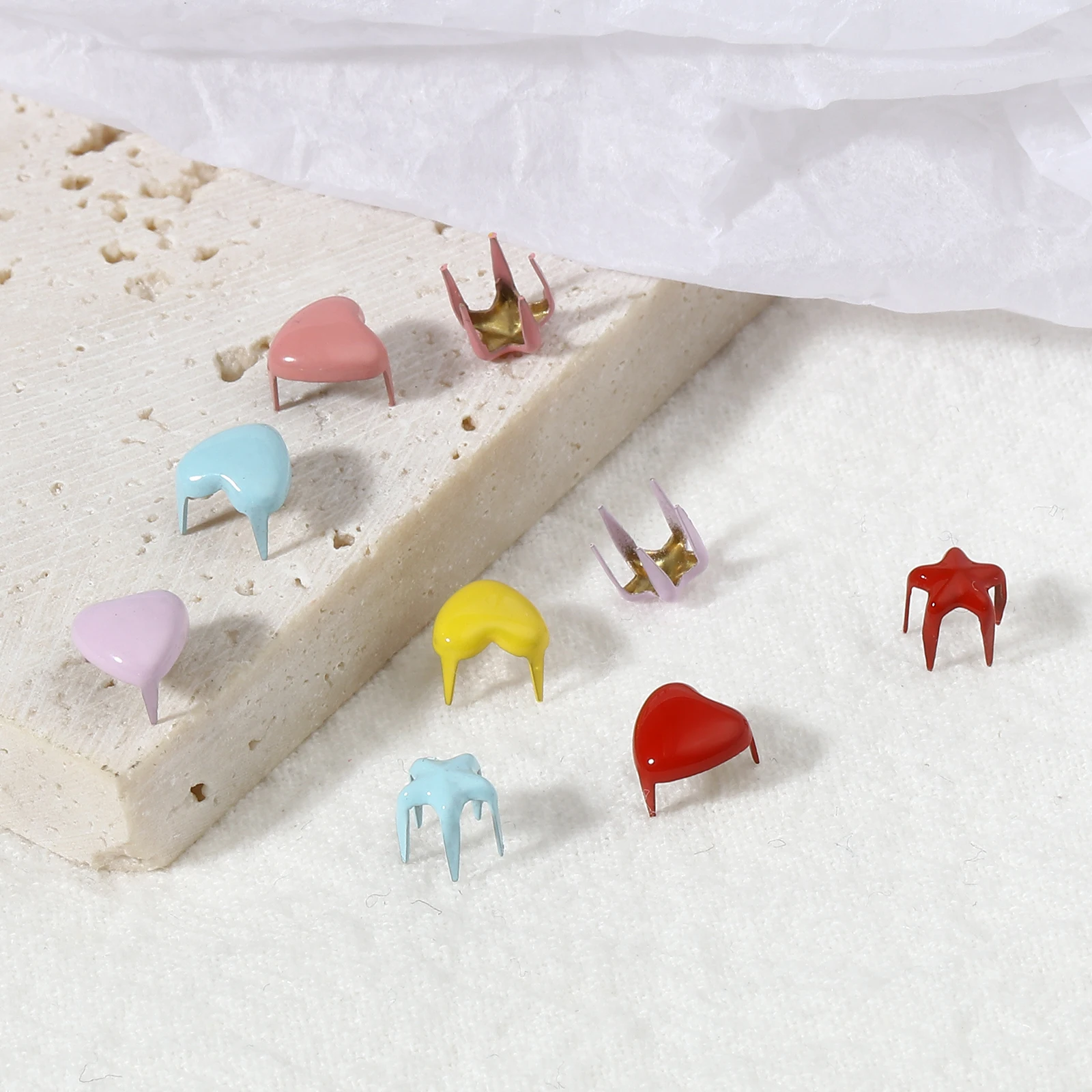 50 шт. мини металлическая звезда сердце кукла заклепки милый кожаный ремесло четыре когти заклепки для шитья куклы Одежда Обувь Браслеты Аксессуары