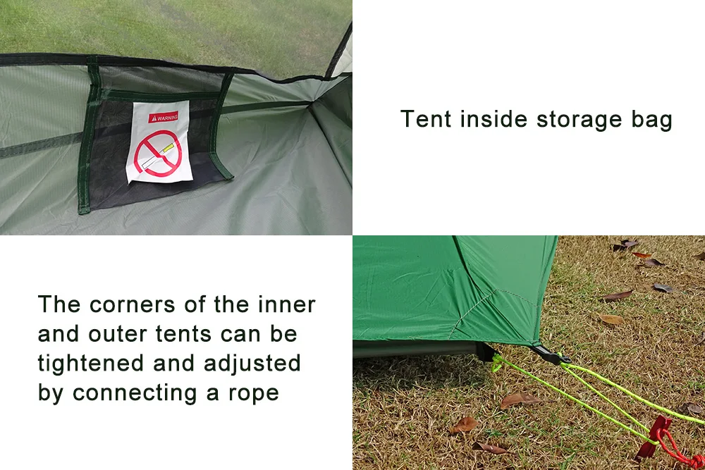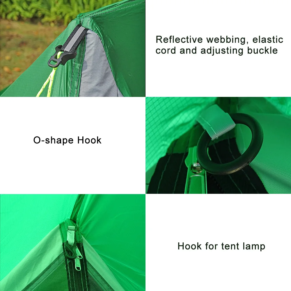 Совет: мы используем нити высокой плотности для увеличения общей прочности палатки на растяжение. Кроме того, нижняя часть палатки составляет 210T нейлоновое ПУ покрытие, которое более износостойкое, чем 20D нейлон.