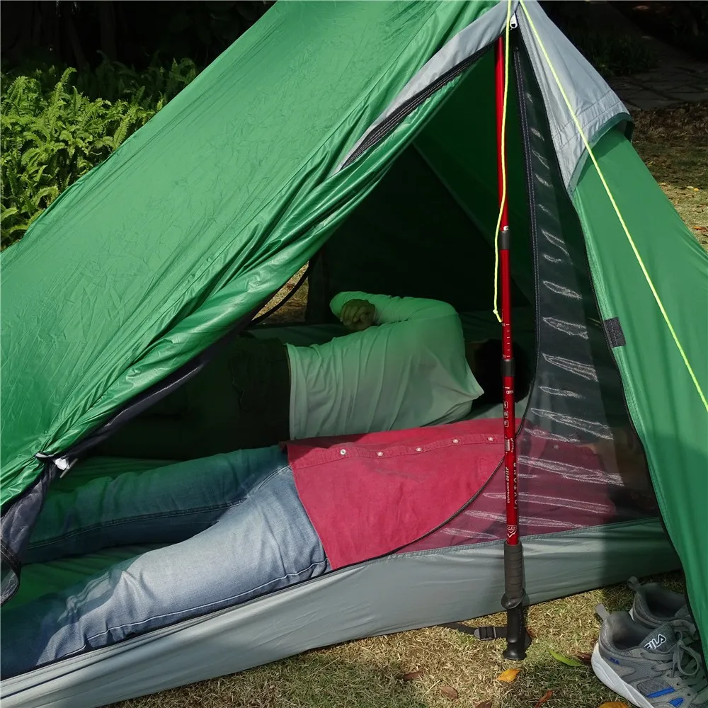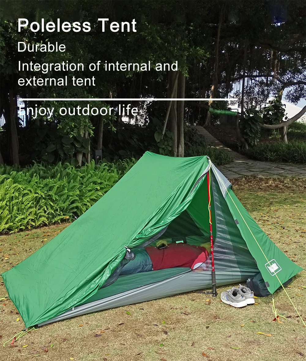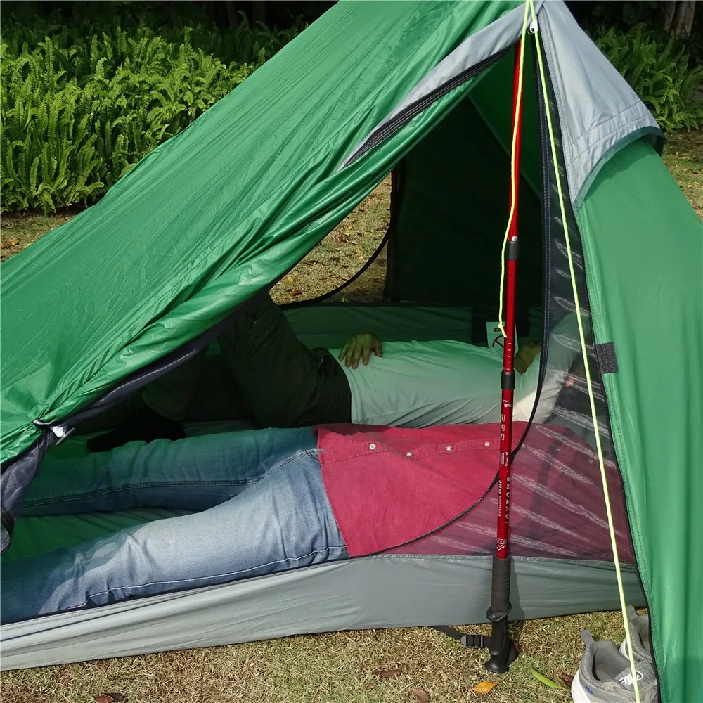 Это беспыльная палатка,Без опорыВ комплект поставки. Для того, чтобы быть более светлым во время треккинга, эта палатка предназначена для подходящих треккинговых палок (или веток дерева).