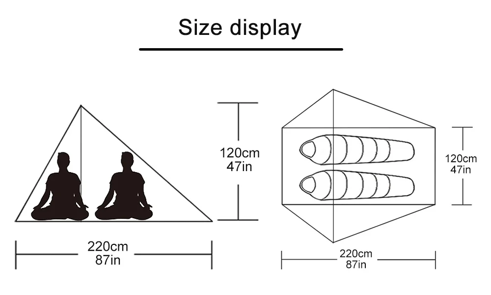 Размер палатки: 220x120x120 см