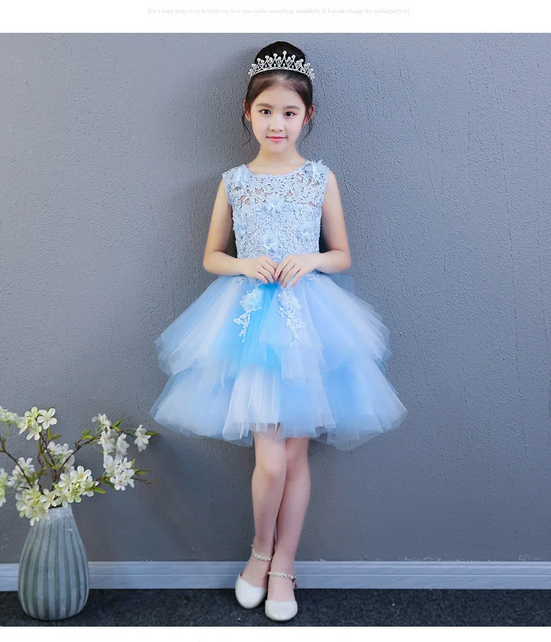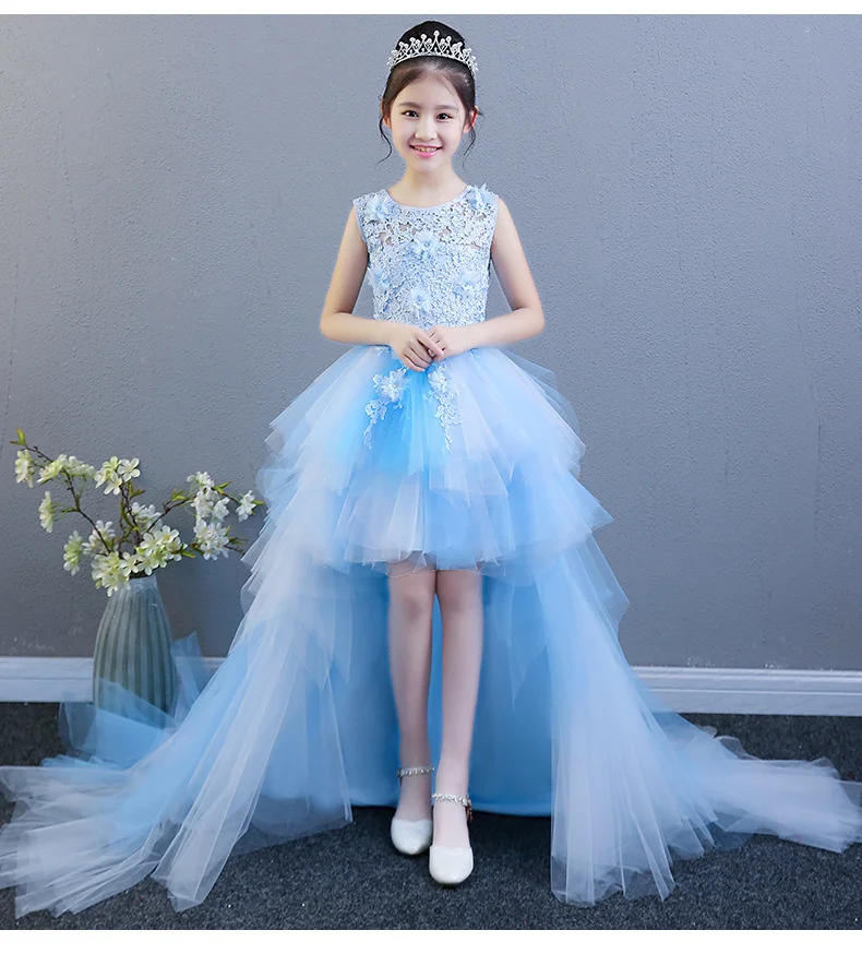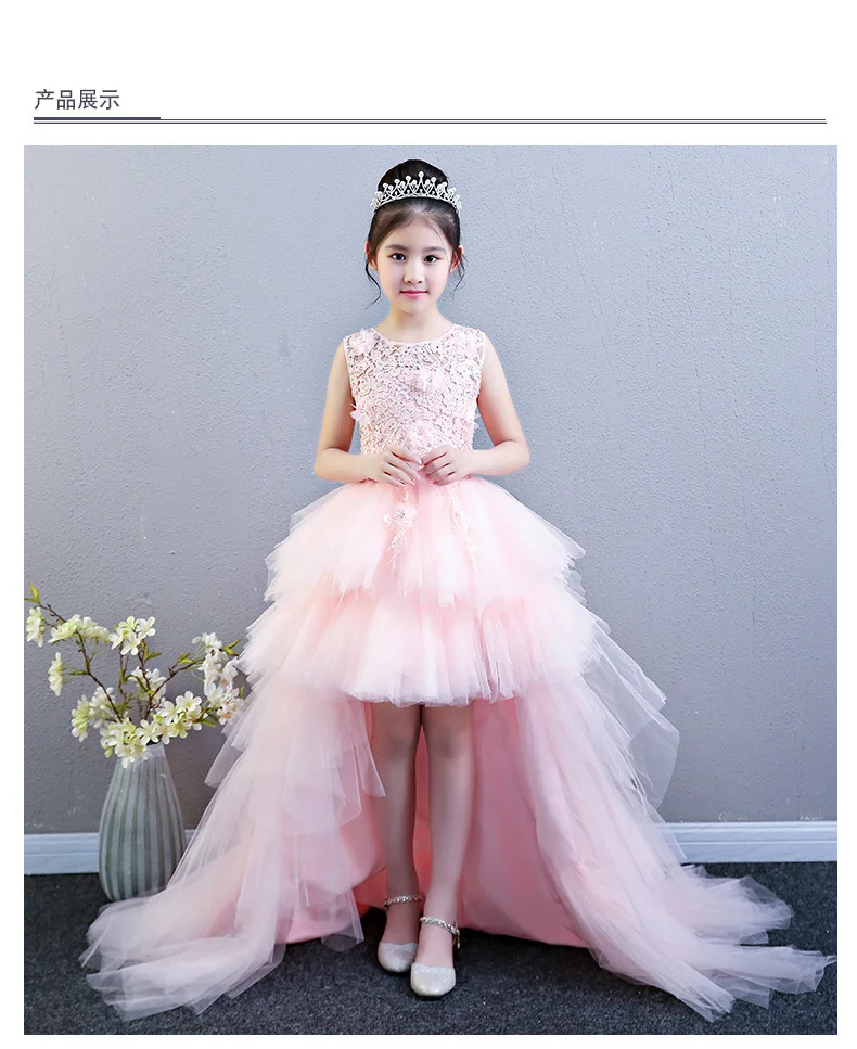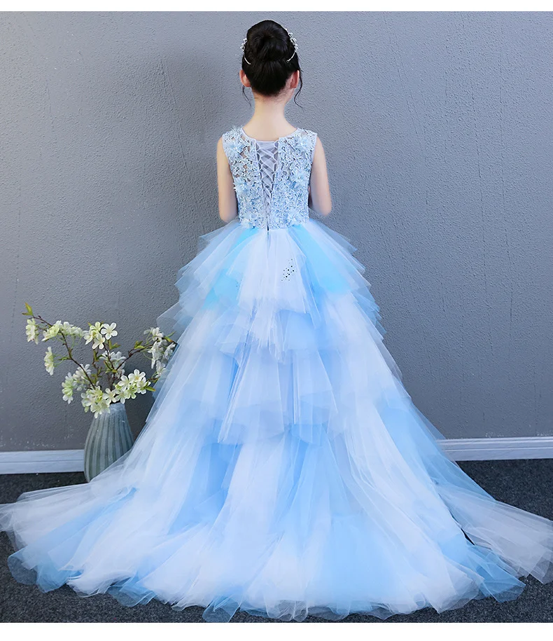 2021 Princess Dress Gorgeous Children Girls Fluffy Dress Evening Party Ceremony Model Catwalk Host Long Tail Dress Kids Birthday