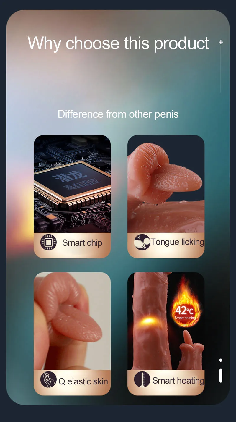 Функции: вылизывание языка, телескопический, вращение, вибрация, нагревание
