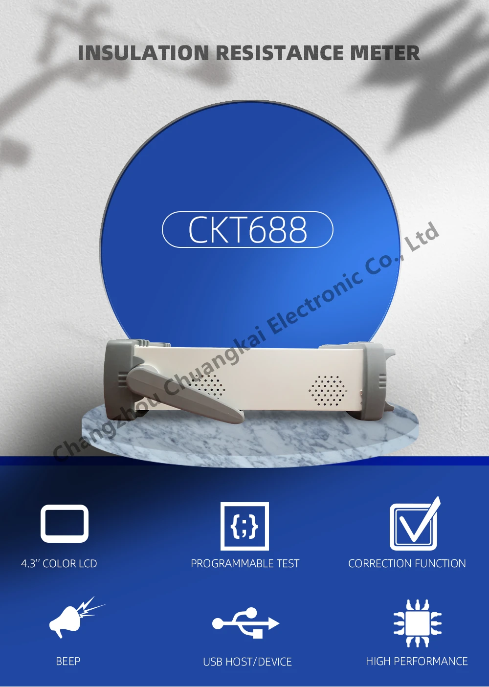 CKT688 принимает 4,3 дюймовый IPS-дисплей с реальным цветом показывает Тестовое значение, программируемый и регулируемый, с тестовой скоростью: 12 раз/сек; Двойное отображение сопротивления и тока утечки, CKT688-программируемый режим последовательного тестирования, имеет 4-уровневую функцию компаратора of3-binGD и один НГ. Оснащен обработчиком/RS232C/USB/RS485interface для дистанционного управления. U-диск записывает тестовые данные и может удаленно обновлять прошивку прибора. С дополнительной функцией триггера ножного переключателя. CKT688 широко используется для сопротивления высокой ценности; Сопротивление изоляции и утечки конденсатора; Различные изоляционные материалы, провода и кабельное оборудование и т. Д.