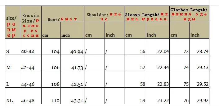 Размер пальто