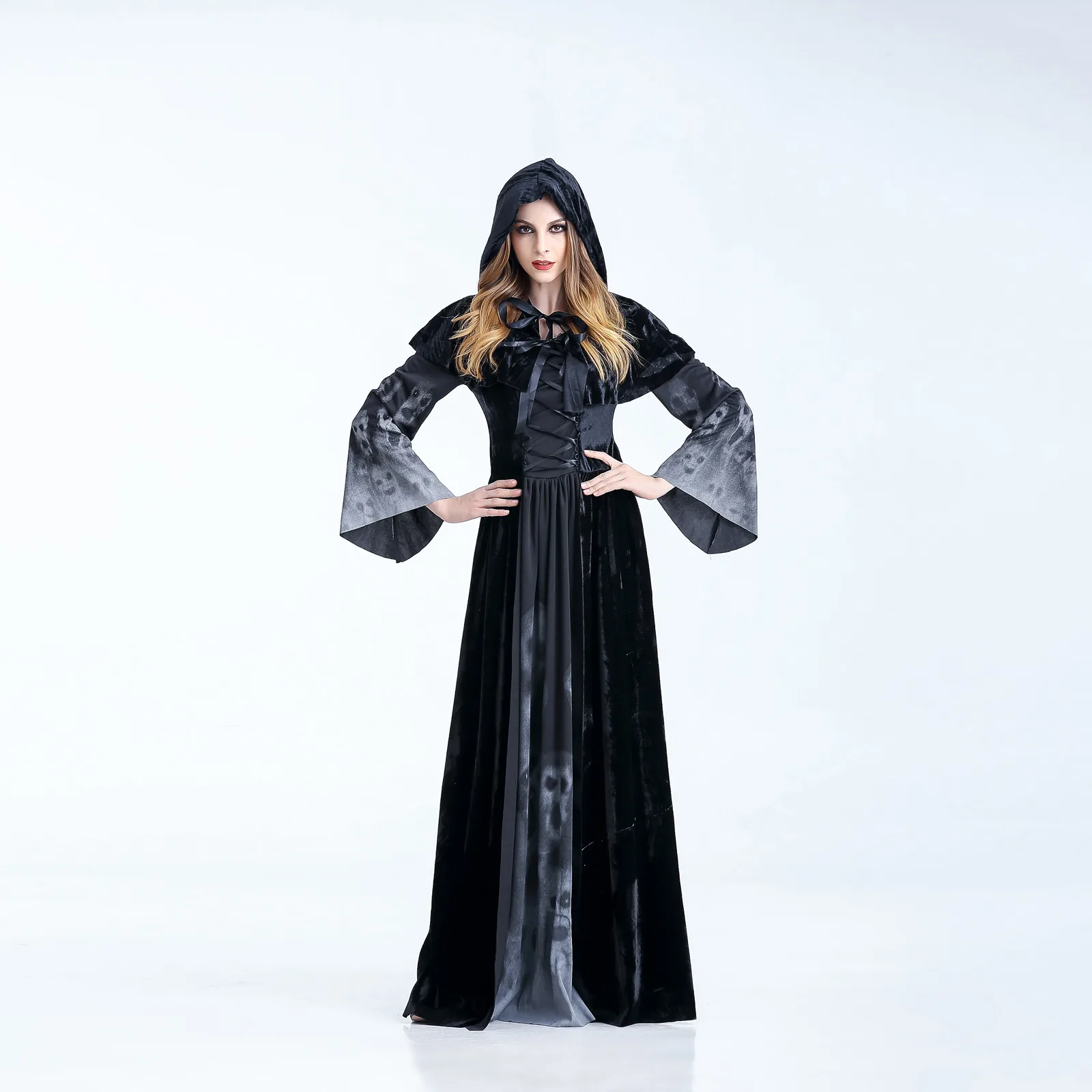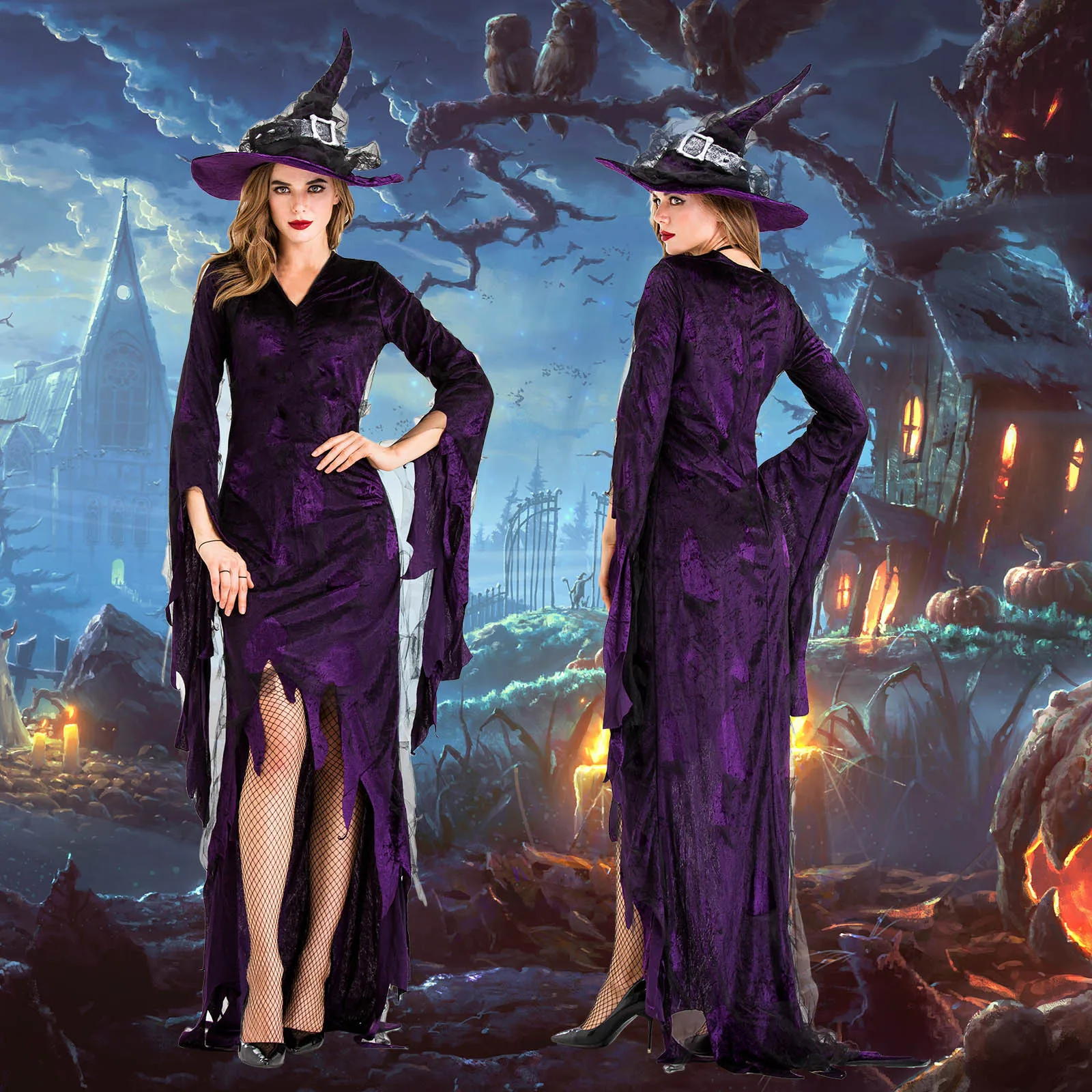 Женское платье для костюмированной вечеринки на Хэллоуин, фиолетовое платье ведьмы, готическое платье