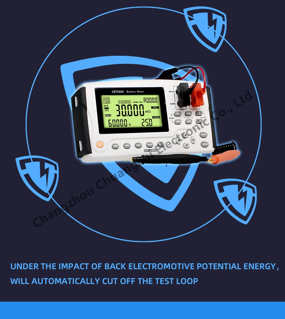 CKT3554A/B/D-это точный тестер для обычных батарей. Он сопоставим с точностью и скоростью настольных инструментов среди портативных устройств, в то время как он легче и меньше, чем настольные инструменты.