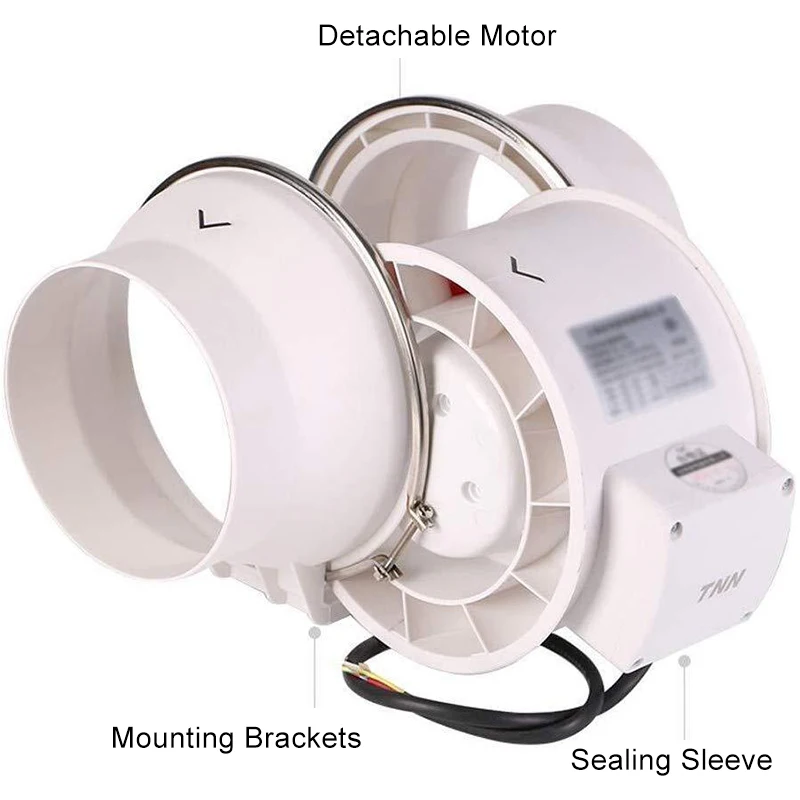 -- Легко установить -- пластиковый вентилятор легче, чем сталь. Съемные концы воздуховода с блокирующими вкладками для быстрого удаления и легкого обслуживания.