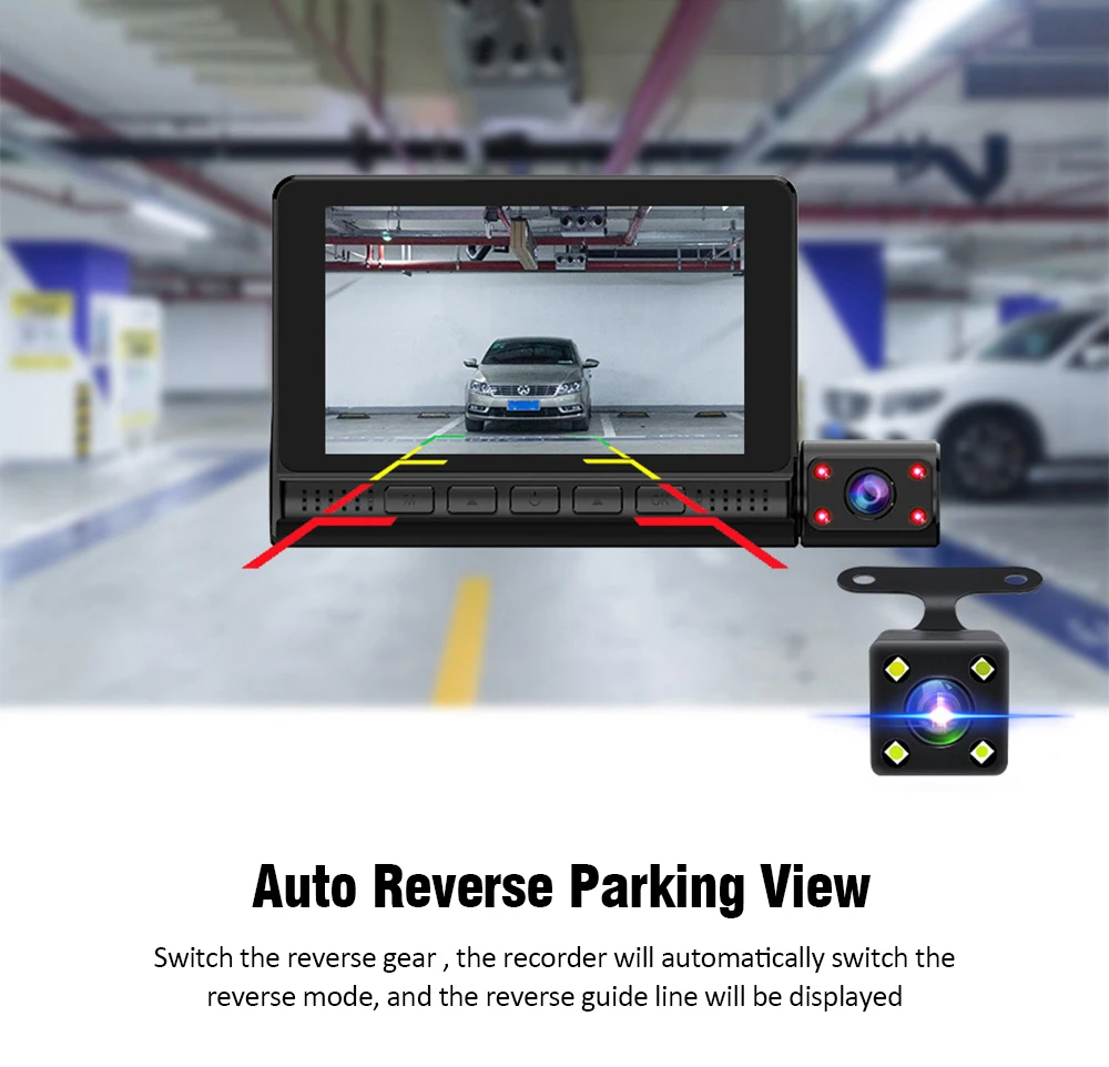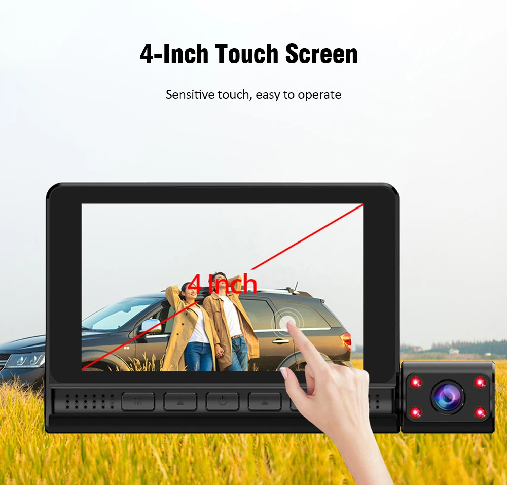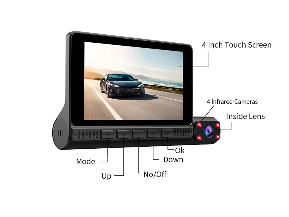 3 Камера s с двумя объективами Автомобильный видеорегистратор 4 дюймовый сенсорный экран Экран FHD 1080P видео Регистраторы Автомобильный видеорегистратор с функцией ночного видения G-Сенсор Поддержка заднего вида Камера
