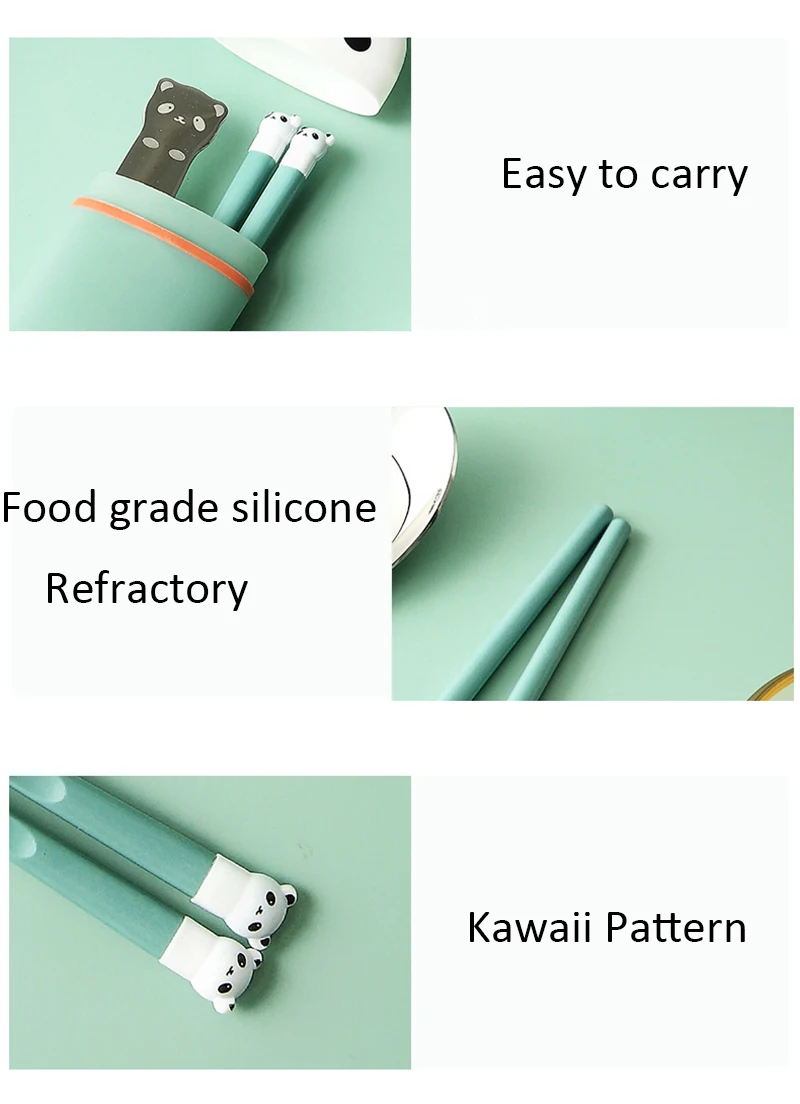 Kawaii Panda портативный набор столовых приборов палочки для еды Ложка силиконовая посуда из нержавеющей стали для кемпинга походная посуда для кухни