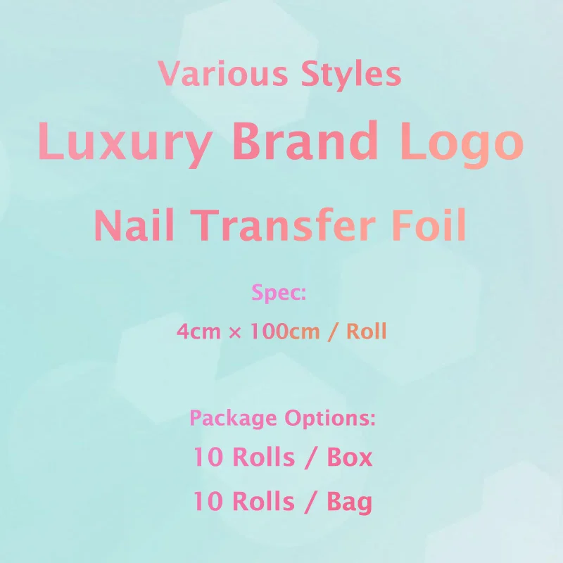 10 рулонов/коробка для ногтей фольги Переводные бумажные наклейки люксовый бренд логотип ногтей искусство водяные знаки наклейки УФ гель Дизайн украшения