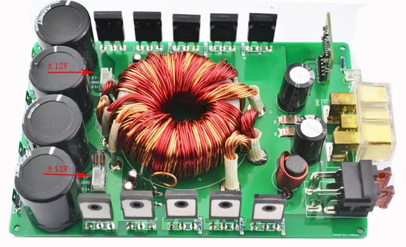 Обычные два набора ± выходной мощности могут быть подключены к плате усилителя мощности с независимым источником питания для двух каналов.