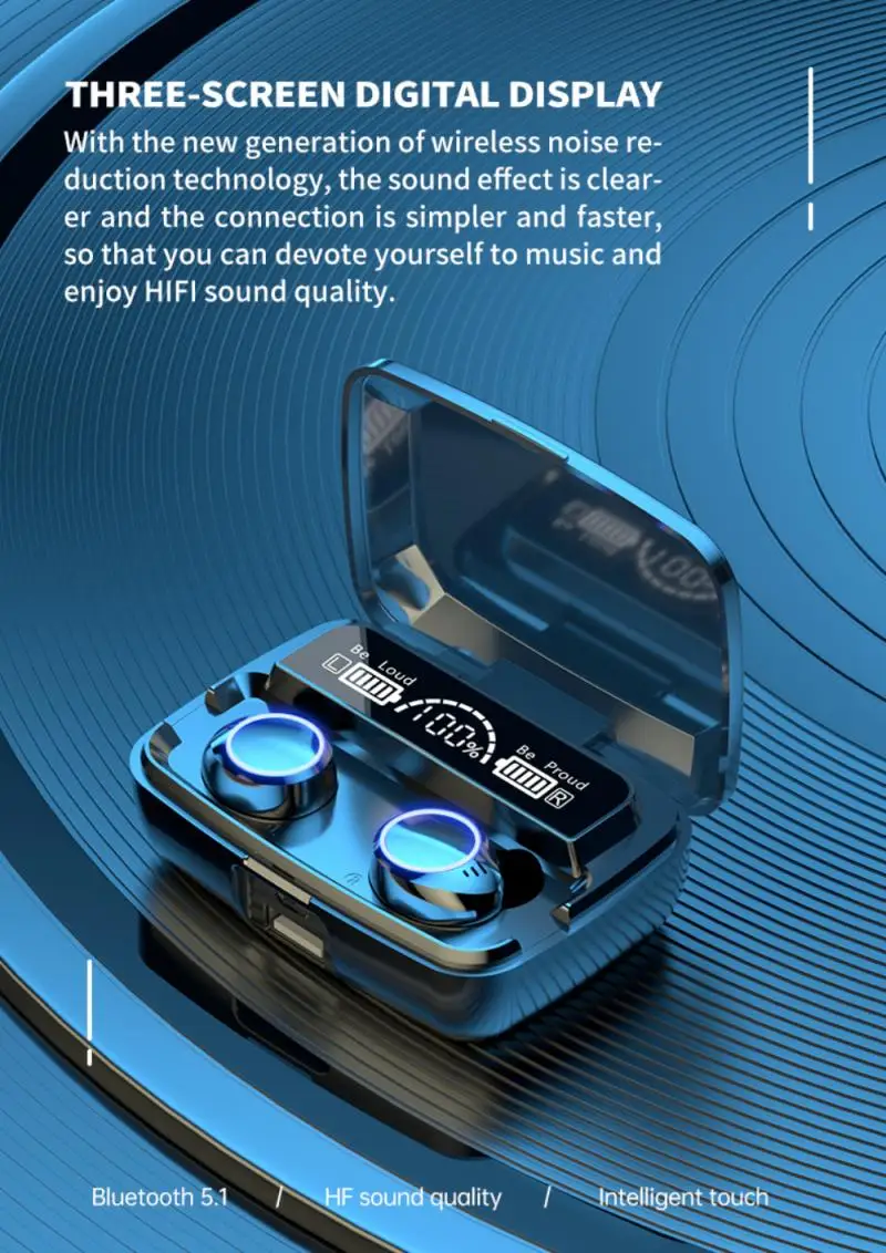 Эти настоящие беспроводные Bluetooth-наушники оснащены чипом Bluetooth 5,0, автоматическим сопряжением загрузки, встроенной активной ИС с шумоподавлением, HD-вызовом и длительным сроком службы батареи большой емкости.