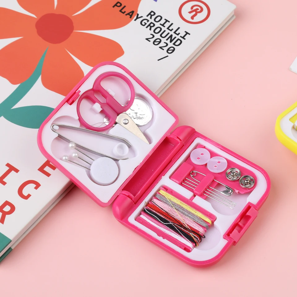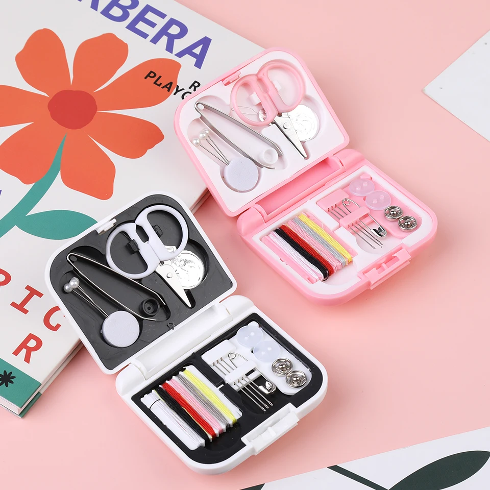 LMDZ Buttons Pins Storage Boxes Sewing Box Household Portable Travel Mini Sewing Kit Scissor Buttons Pins Needle Threads Box Set