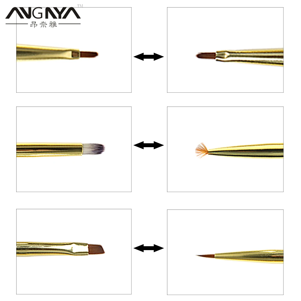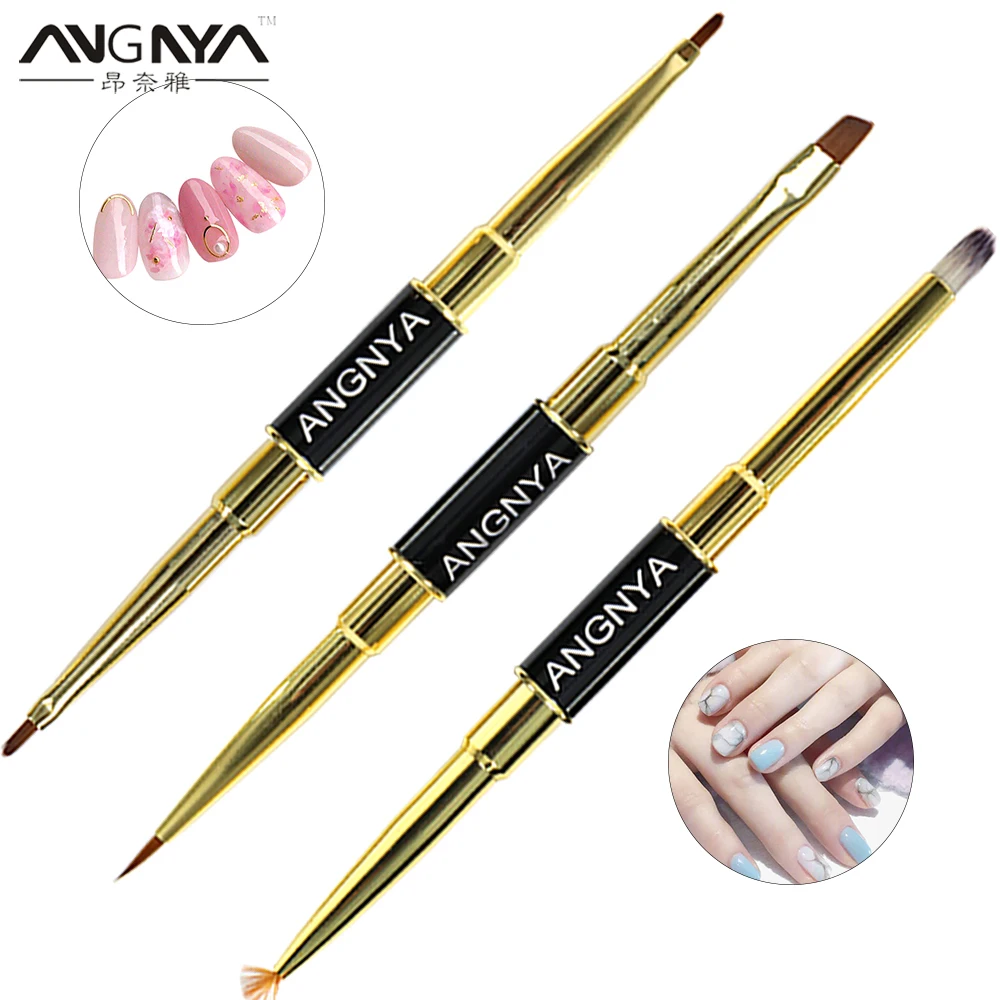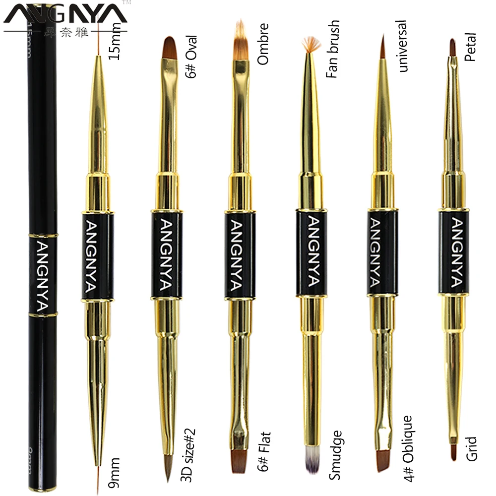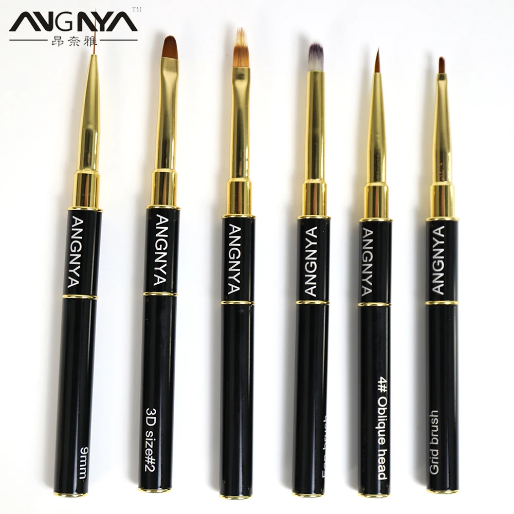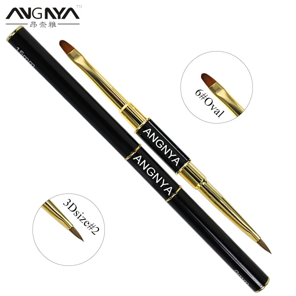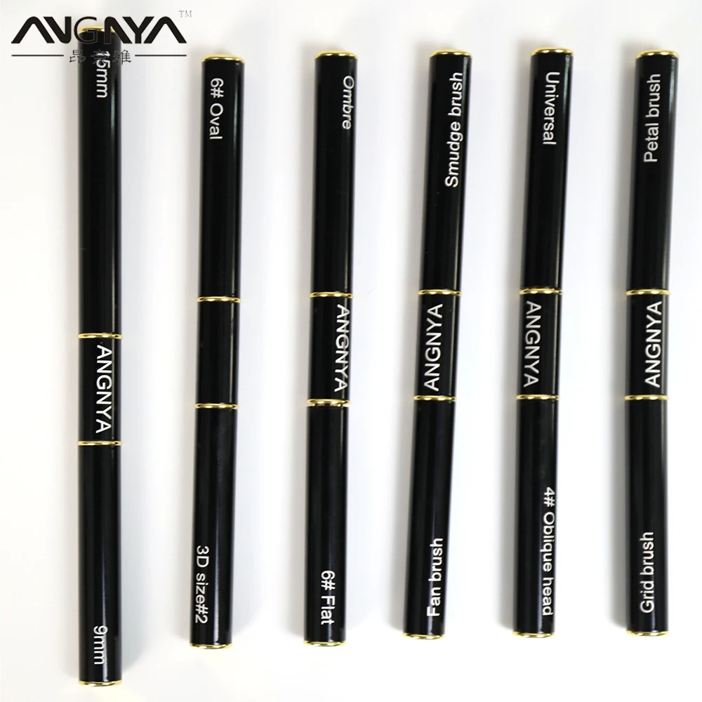 ANGNYA 6 шт. акриловая кисть для дизайна ногтей с двумя головками черная металлическая ручка для рисования УФ-Гель-лак для дизайна ногтей инструмент для маникюра